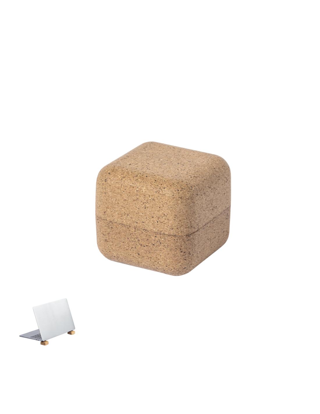 Compacto soporte de línea nature para ordenador portátil. Fabricado en corcho, para así fomentar la utilización de materias primas naturales y reducir las emisiones de contaminantes. Magnético y antideslizante, presentado en atractiva caja individual de diseño eco.