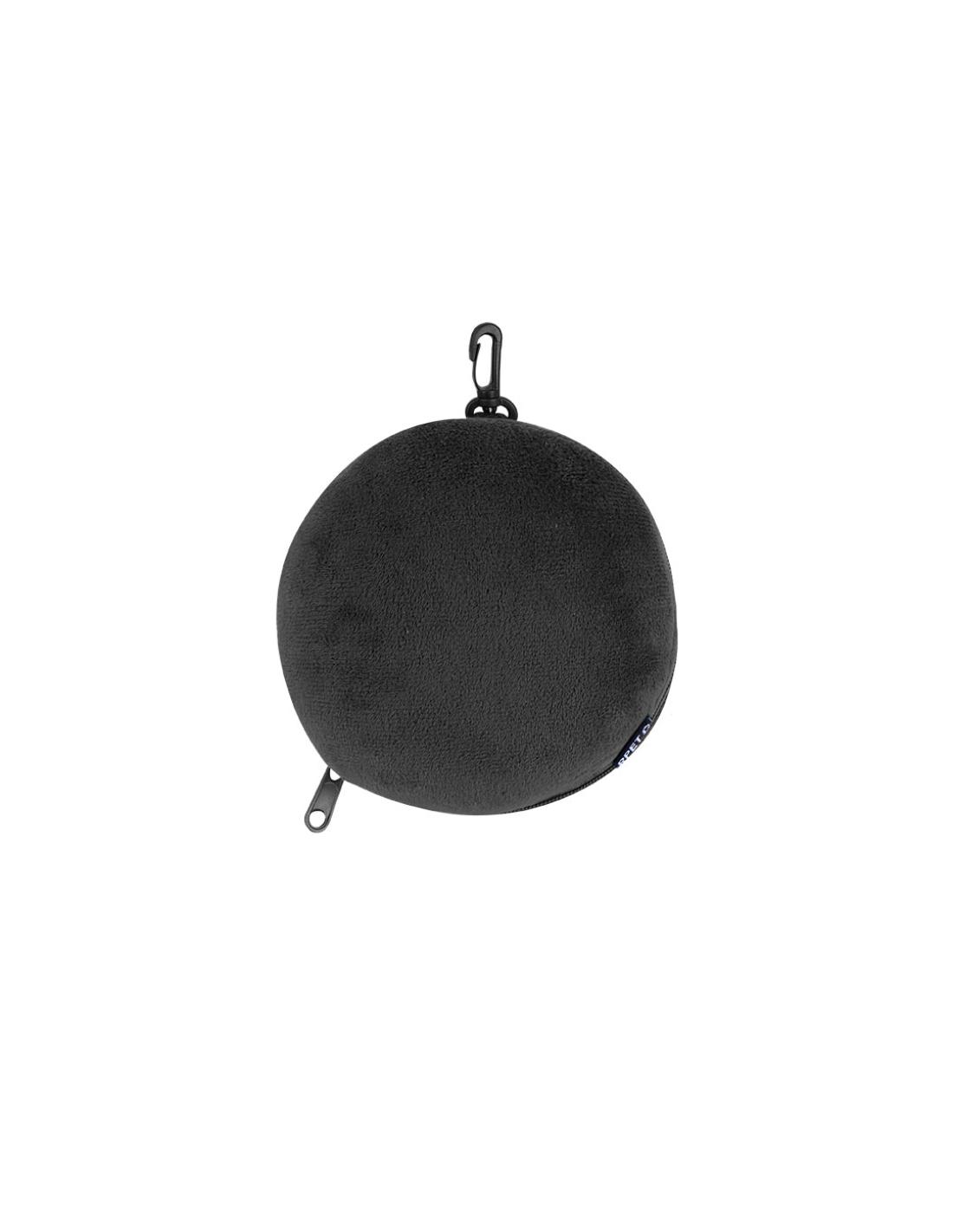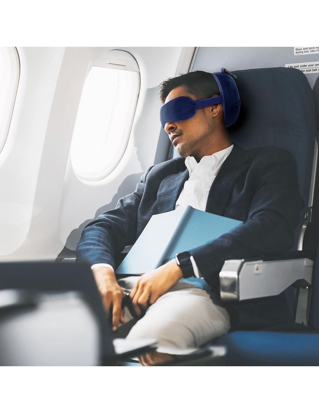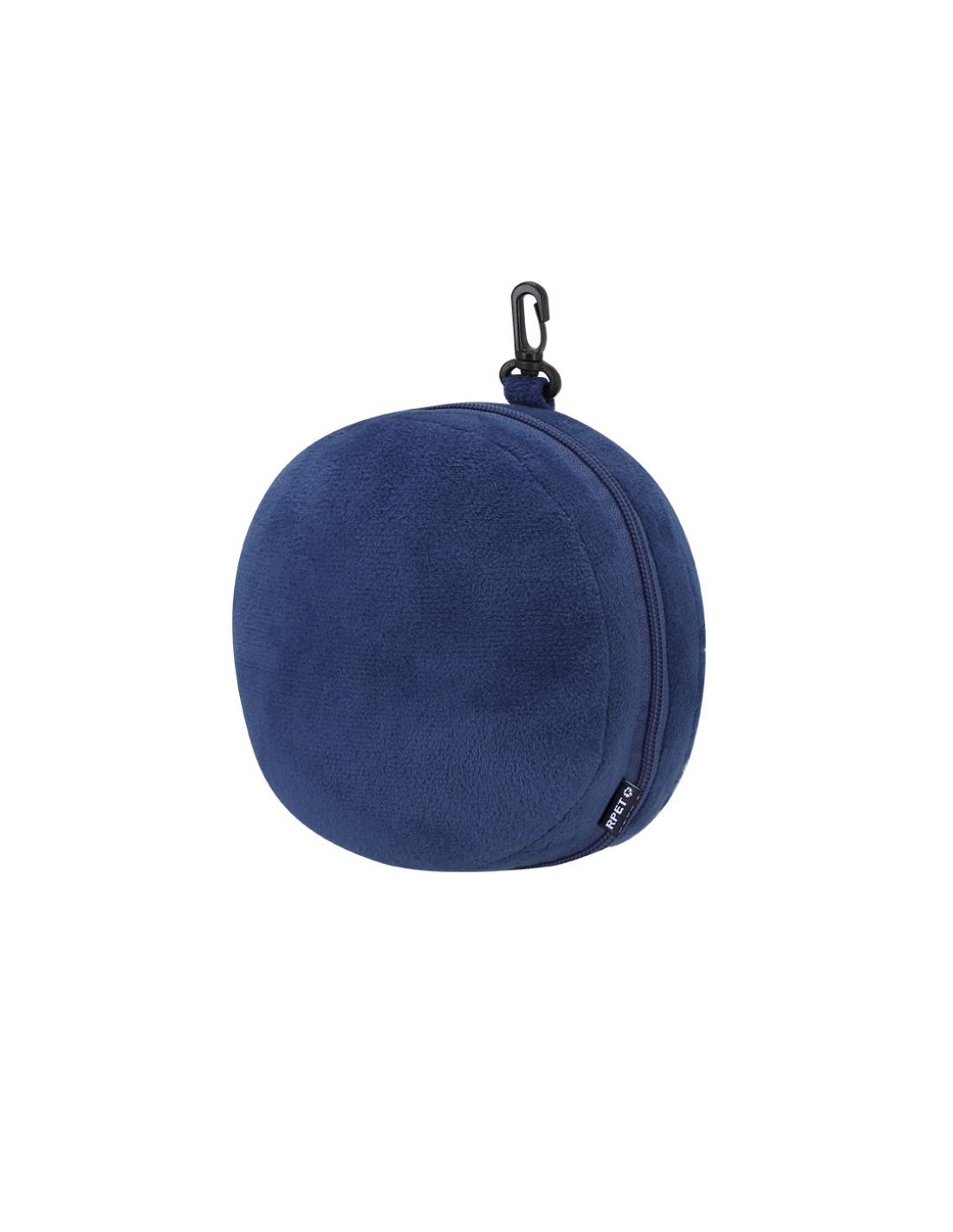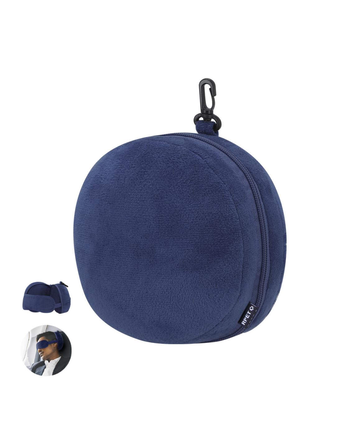 Almohadilla con Antifaz ideal para viajes fabricada en suave material RPET.Incluye antifaz interior adaptable mediante dos gomas elásticas a juego para mayor comodidad y descanso durante el viaje. Cuenta con un esponjoso reposacabezas plegable con cierre de cremallera, lo que facilita su almacenamiento. Además, dispone de práctico bolsillo exterior y mosquetón de plástico en color negro, que permite transportarlo de cómoda.Este accesorio combina funcionalidad, diseño compacto y siendo perfecto sus viajes.El material RPET se elabora a partir de plástico reciclado, para así fomentar la reutilización de residuos plásticos y ayudar a la sostenibilidad del planeta.