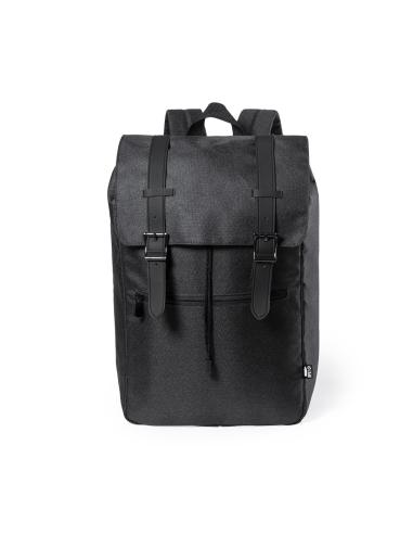 Mochila urban de línea nature, fabricada en resistente poliéster 300D RPET libre de PVC, elaborado a partir de plástico reciclado, para así fomentar la reutilización de residuos plásticos y contribuir a la sostenibilidad del planeta. Bolsillo principal con tiras y cierres de hebilla metálicos con bolsillo frontal de cremallera y tirador metálico. Interior con bolsillo acolchado para portátil de hasta 15 pulgadas y tablet de hasta 10 pulgadas. Cintas ajustables para hombro acolchadas, con distintivo RPET en etiqueta exterior.