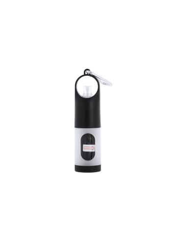 Dispensador de bolsas para mascotas con resistente cuerpo en ABS y compartimento recargable para gel hidroalcohólico -incluye gel-. Equipado con mosquetón metálico para fácil transporte. Incluye gel hidroalcohólico de 15ml y 15 bolsas.