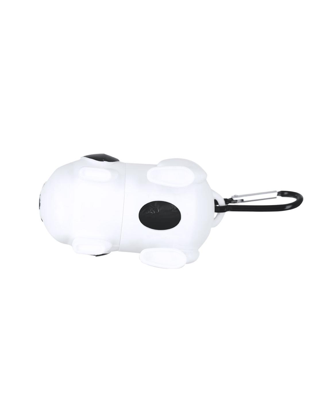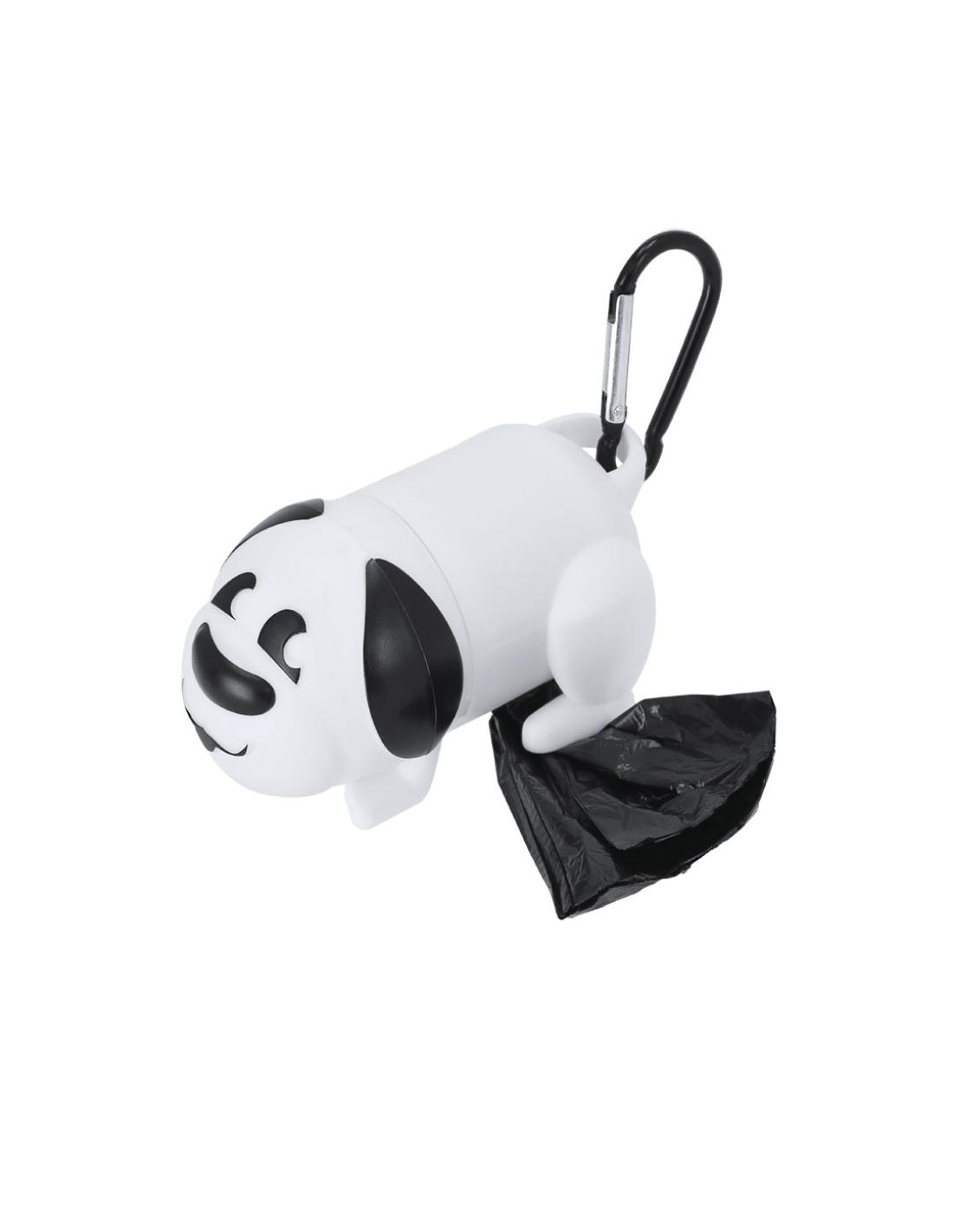 Dispensador de bolsas para mascotas con original diseño en forma de perro. Cuenta con mosquetón de transporte. Incluye 15 bolsas.