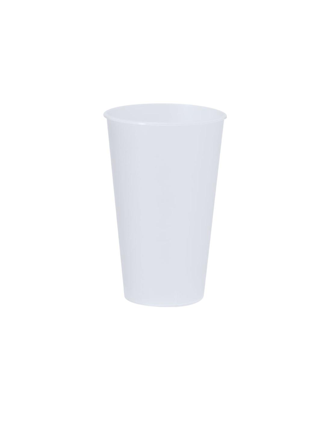 Vaso de 550 ml de capacidad en material PP. Color transparente en acabado frosted. Color blanco y negro en acabado solido.
