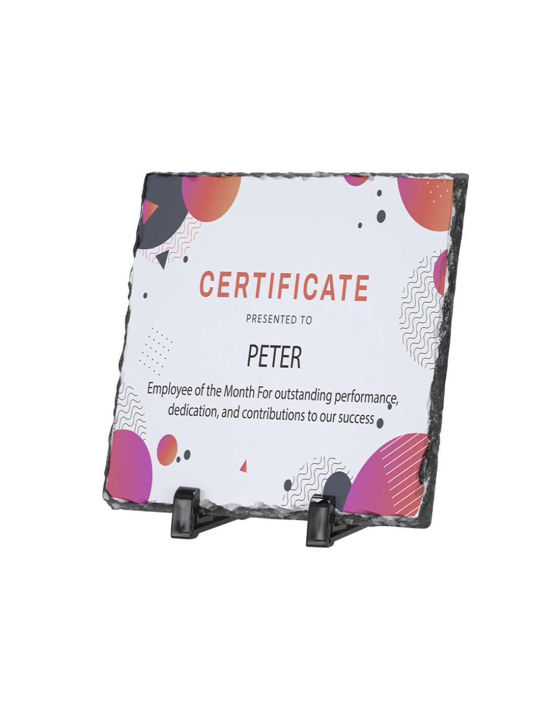 Placa de pizarra, ideal para sublimación. Incluye soportes de exposición en resistente ABS. Ideal para regalos personalizados, reconocimientos,premios y decoración.