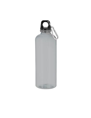 Bidón fabricado en resistente material RPET, con una capacidad de 630 ml. Cuerpo translúcido y tapón negro de cierre a rosca para garantizar un sellado óptimo. Incluye mosquetón metálico que facilita su transporte. Libre de BPA.El material RPET se elabora a partir de plástico reciclado, para así fomentar la reutilización de residuos plásticos y ayudar a la sostenibilidad del planeta.