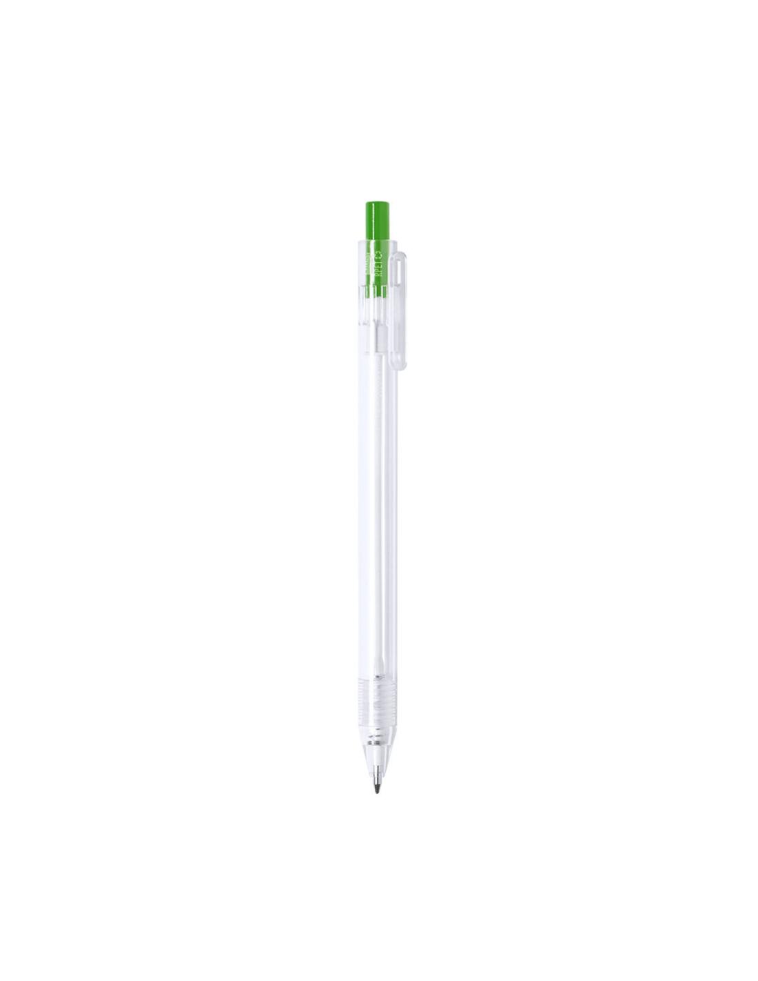 Bolígrafo de línea nature en material RPET, elaborado a partir de plástico reciclado para así fomentar la reutilización de residuos plásticos y ayudar a la sostenibilidad del planeta. De acabado translúcido y con pulsador disponible en variada gama de colores, con distintivo RPET en el cuerpo del bolígrafo. Especialmente diseñado para marcaje en tampografía, de mecanismo pulsador y con tinta azul.