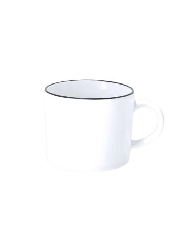 Taza de cerámica de 400 ml de capacidad de acabado exterior mate y detalle en color negro.