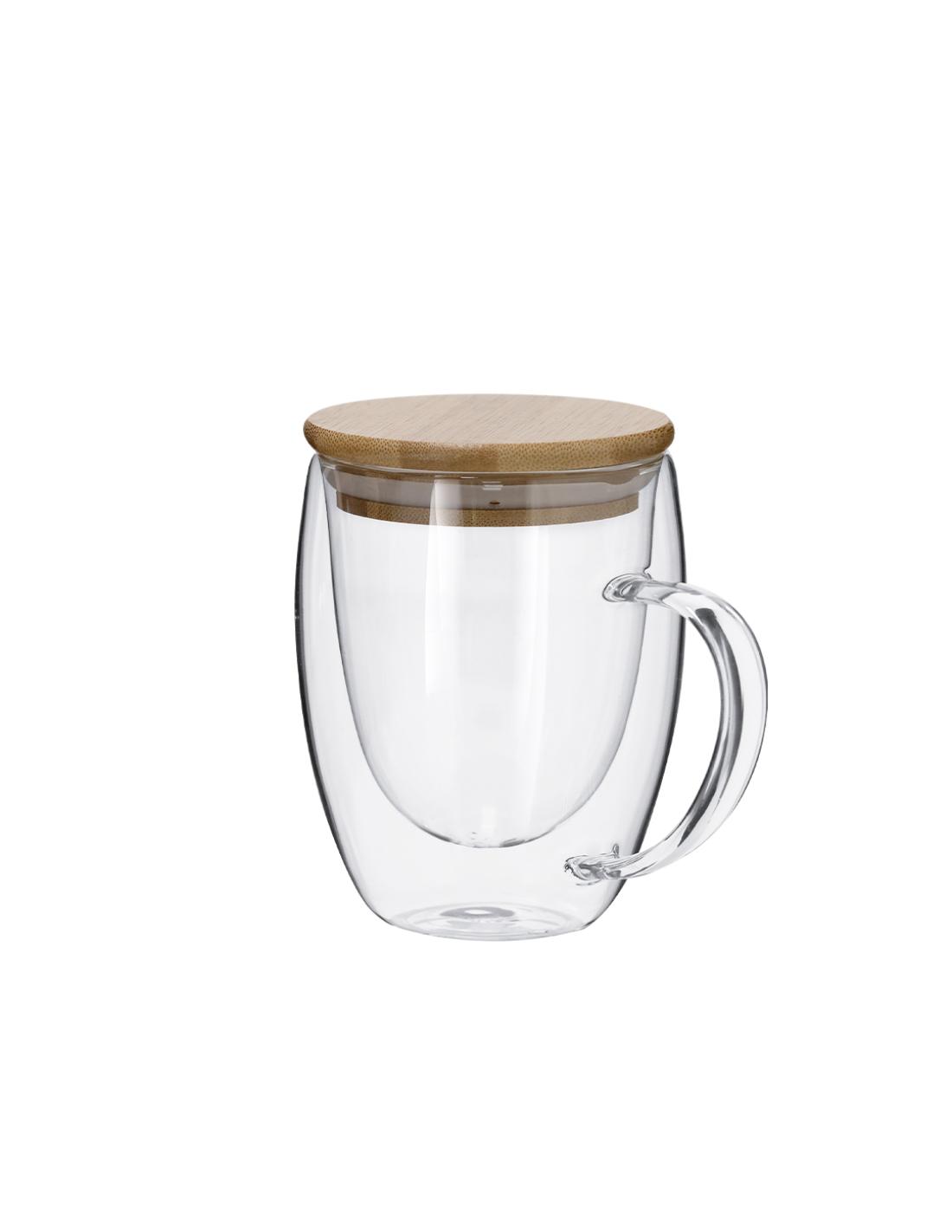 Taza térmica de doble pared y 300 ml de capacidad. Fabricada en cristal de borosilicato con tapa con sellado hermético de bambú.Fabricado en cristal de borosilicato, que ofrece una resistencia y durabilidad excepcionales, alargando su vida útil y pudiendo ser reutilizado infinidad de veces.