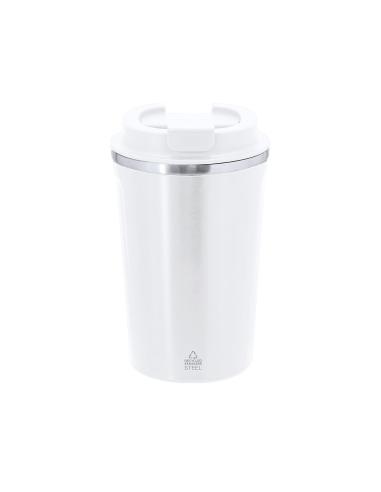 Vaso térmico de doble pared fabricadao en Acero Inox Recliclado y 400 ml de capacidad. Tapadera con dosificador de fácil apertura de PP y libre de BPA. Incluye distintivo de Acero Inox Reciclado.El acero es uno de los materiales más demandados y que puede encontrarse casi en todas partes, desde productos de uso diario a grandes construcciones. Con innumerables propiedades, entre las que cabe destacar la durabilidad y su alto grado de reutilización, convirtiéndolo en una alternativa muy valorada en soluciones de sostenibilidad. Debidamente tratado, permite obtener nuevos recursos de infinita utilización.