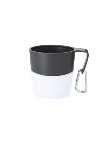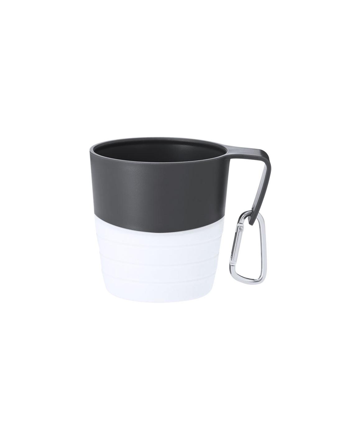 Taza plegable de 340 ml de capacidad. Fabricado en silicona de alta calidad con borde y asa rígidos fabricados en resistente PP. Con cuerpo de acabado mate, esta taza puede ser plegada para un cómodo y sencillo almacenamiento. Incluye mosquetón metálico para fácil transporte. Libre de BPA.