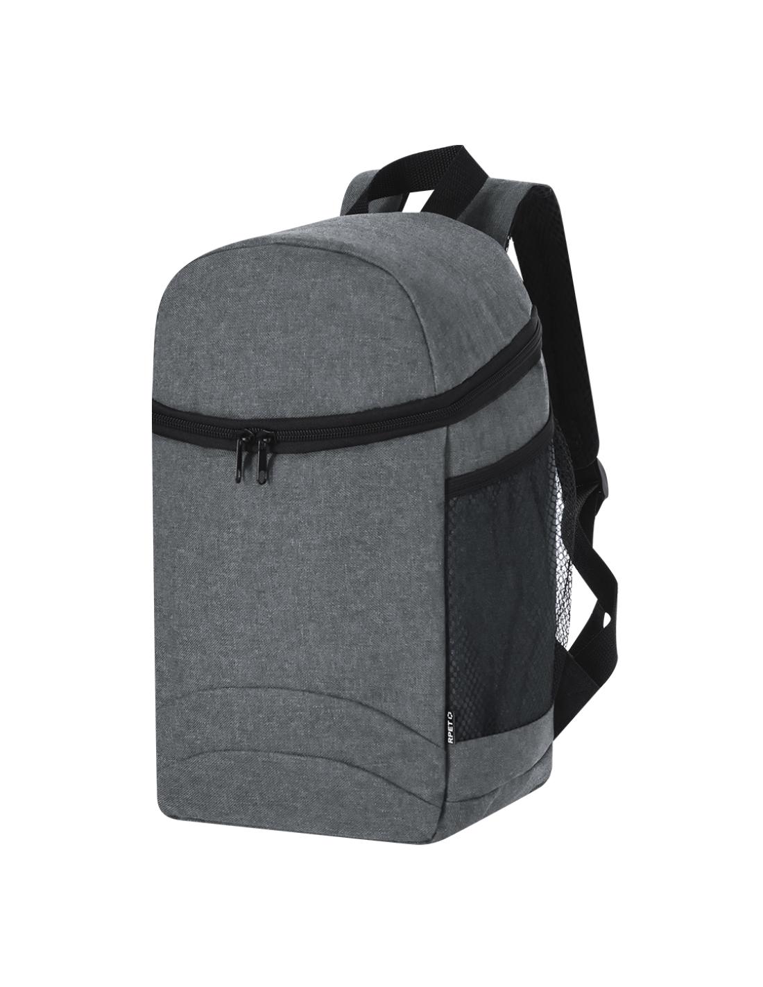 Mochila nevera de gran capacidad fabricada en resistente poliéster RPET 600D de alta calidad. Compartimento principal con cierre de cremallera de doble tirador, con interior en PEVA. Con bolsillos laterales en redecilla. Cinta de hombros ajustables y acolchadas. Incluye banda en la parte superior. Totalmente acolchada. Distintivo RPET en etiqueta.El material RPET se elabora a partir de plástico reciclado, para así fomentar la reutilización de residuos plásticos y ayudar a la sostenibilidad del planeta.