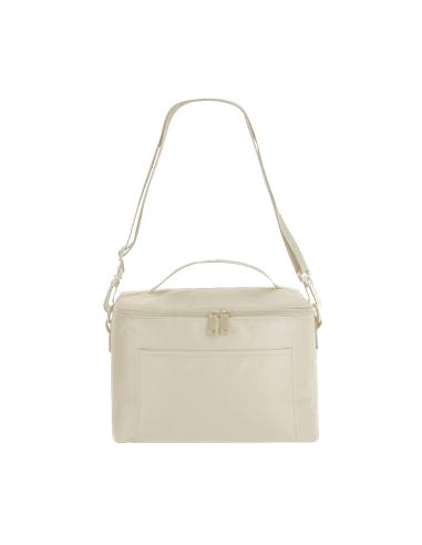 Nevera fabricada en PU con interior de PEVA. Cuenta con detalles a juego, base reforzada y compartimento principal con cierre de cremallera. Incluye bolsillo interior, bolsillo exterior, asa superior y cinta bandolera ajustable para un transporte cómodo y práctico.