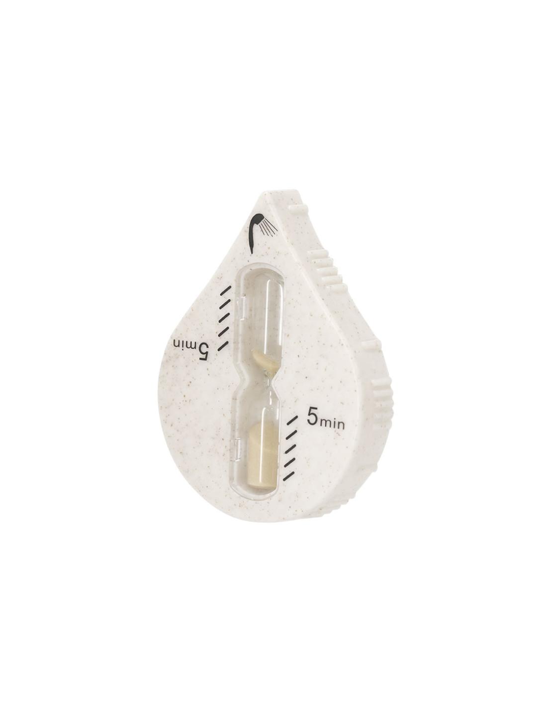 Reloj de arena fabricado en caña de trigo con original forma de gota. Con 5 minutos de duración especialmente diseñado para medir el tiempo de duración de la ducha. Con ventosa de ajuste de alto poder de adherencia.La Caña de Trigo fomenta la utilización de materias primas naturales, reduciendo así las emisiones contaminantes.