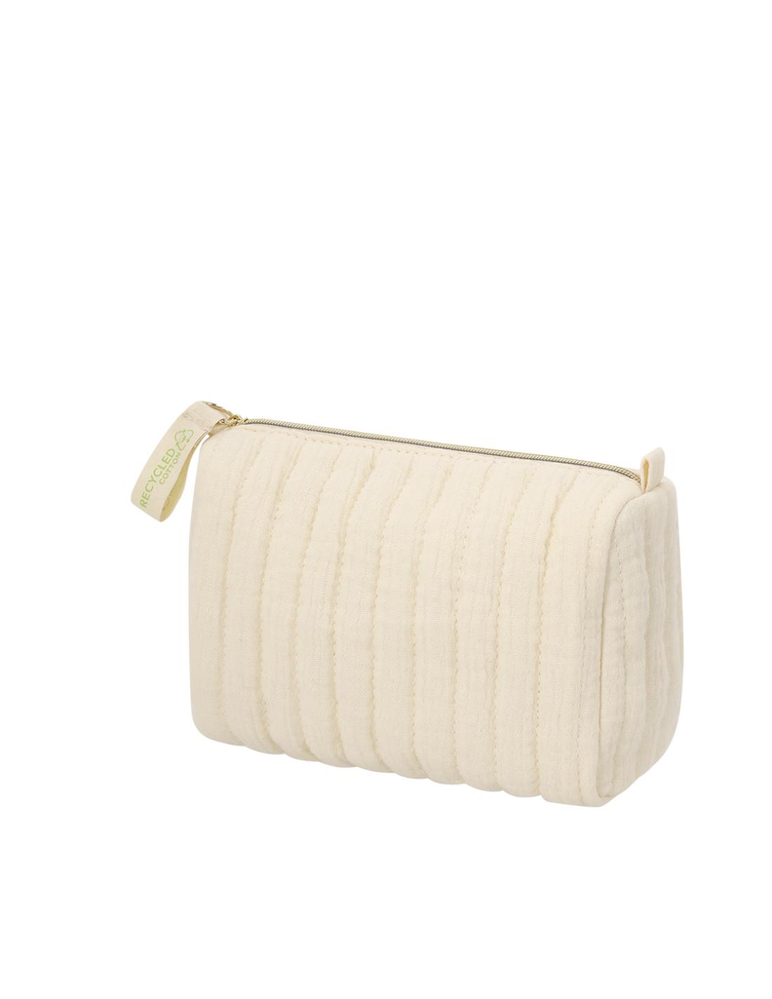 Neceser en Algodón Reciclado de diseño acolchado. Forro interior. Incluye distintivo de algodón reciclado en el tirador.