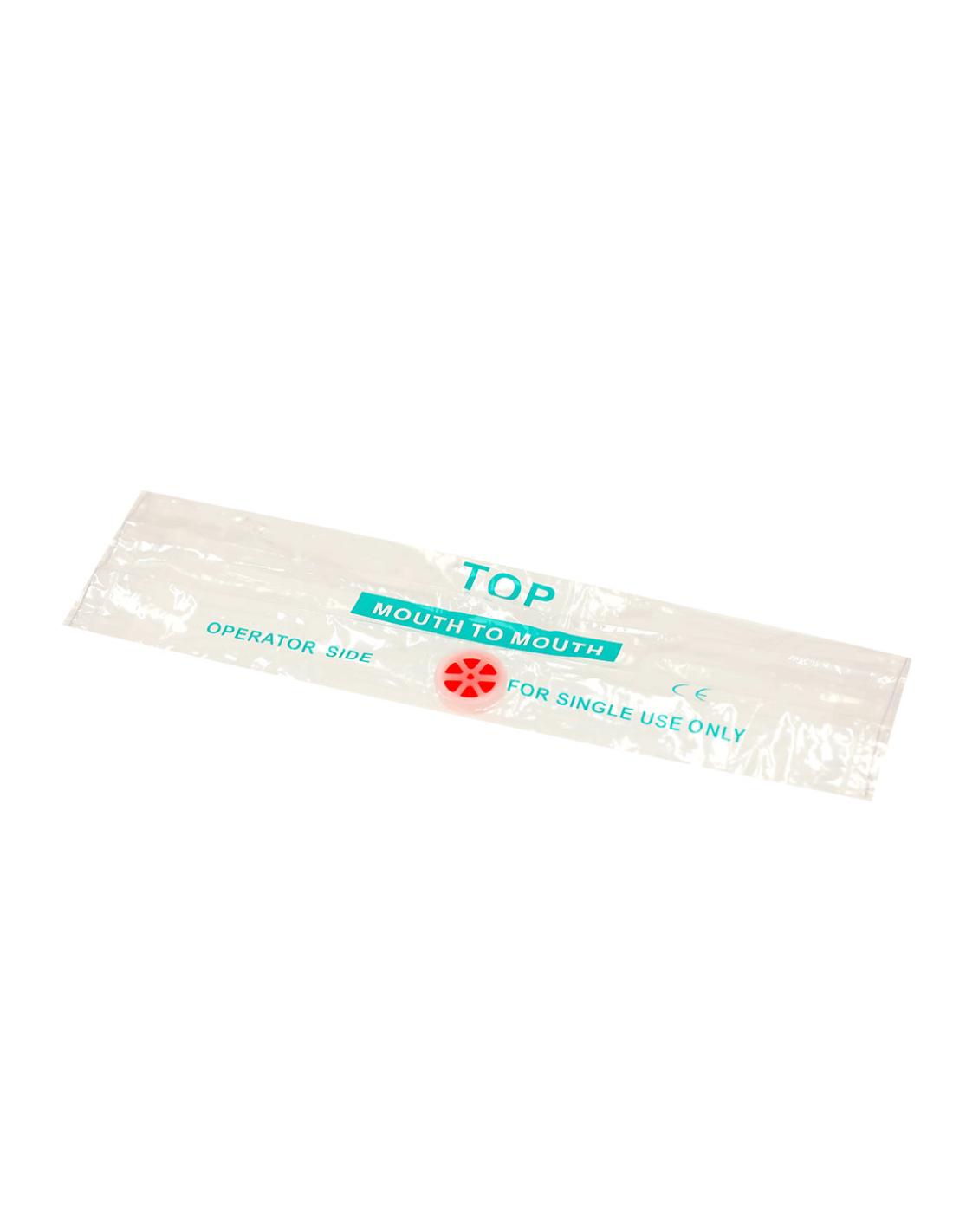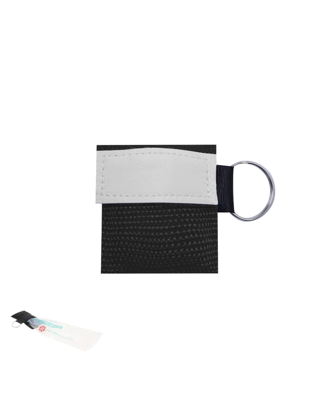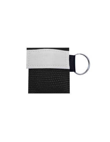 Llavero mascara para reanimación CRP, de formato compacto en una pequeña bolsa de poliéster 600 D con cierre de velcro y aro metálico para convertirse en llavero.