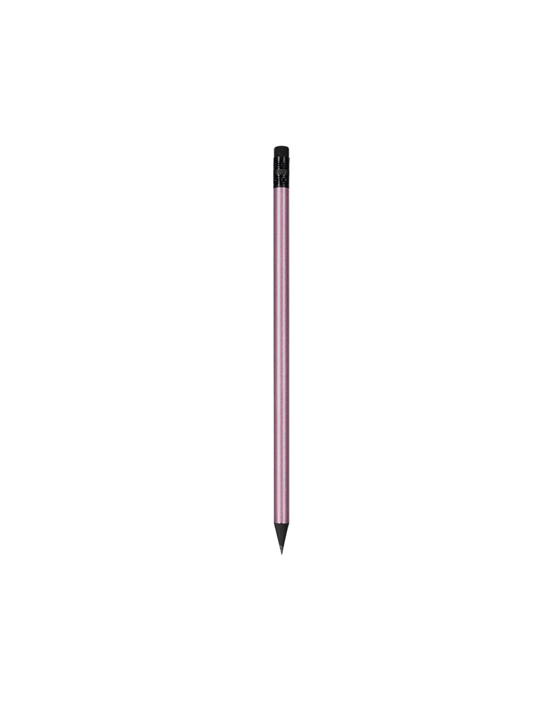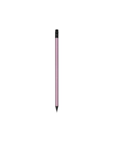 Lápiz de color metalizado con interior negro fabricado en madera. Incluye goma en color negro. Con mina negra y punta afilada.