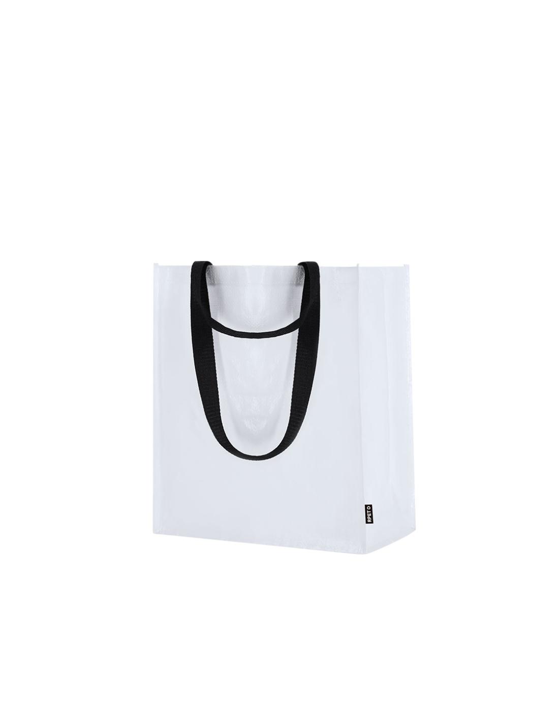 Bolsa fabricada en pp-woven laminado RPET. Equipada con doble asa reforzadas: asas cortas de 40x3 cm y largas de 70x3 cm. Con resistencia de hasta 8kg.El material RPET se elabora a partir de plástico reciclado, para así fomentar la reutilización de residuos plásticos y ayudar a la sostenibilidad del planeta.