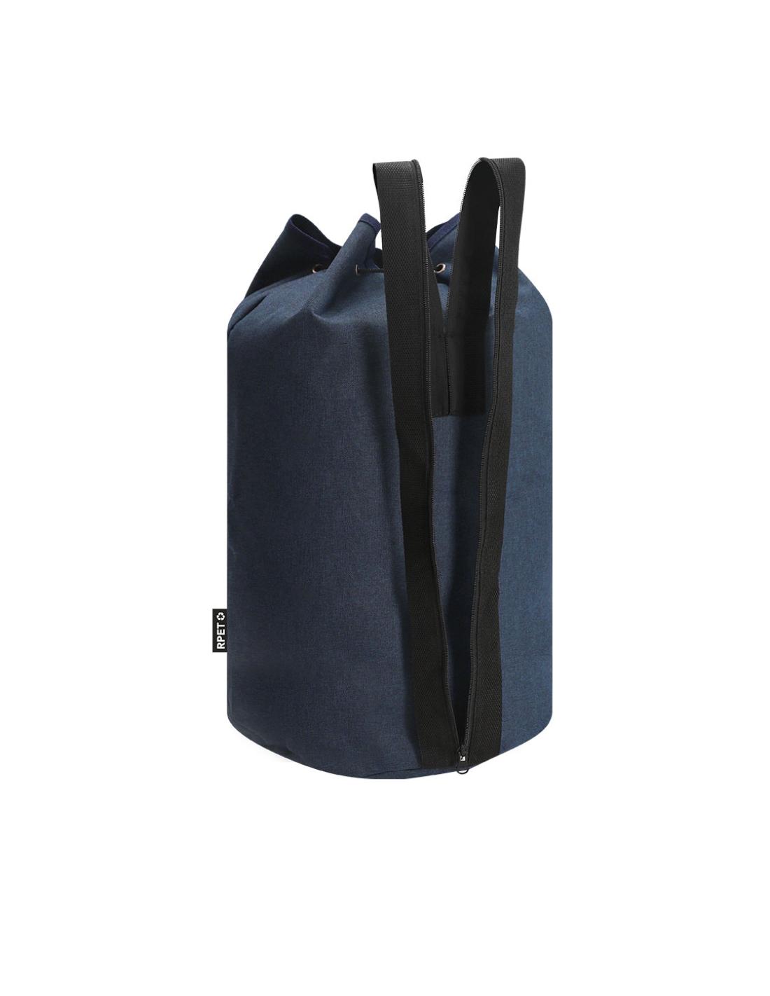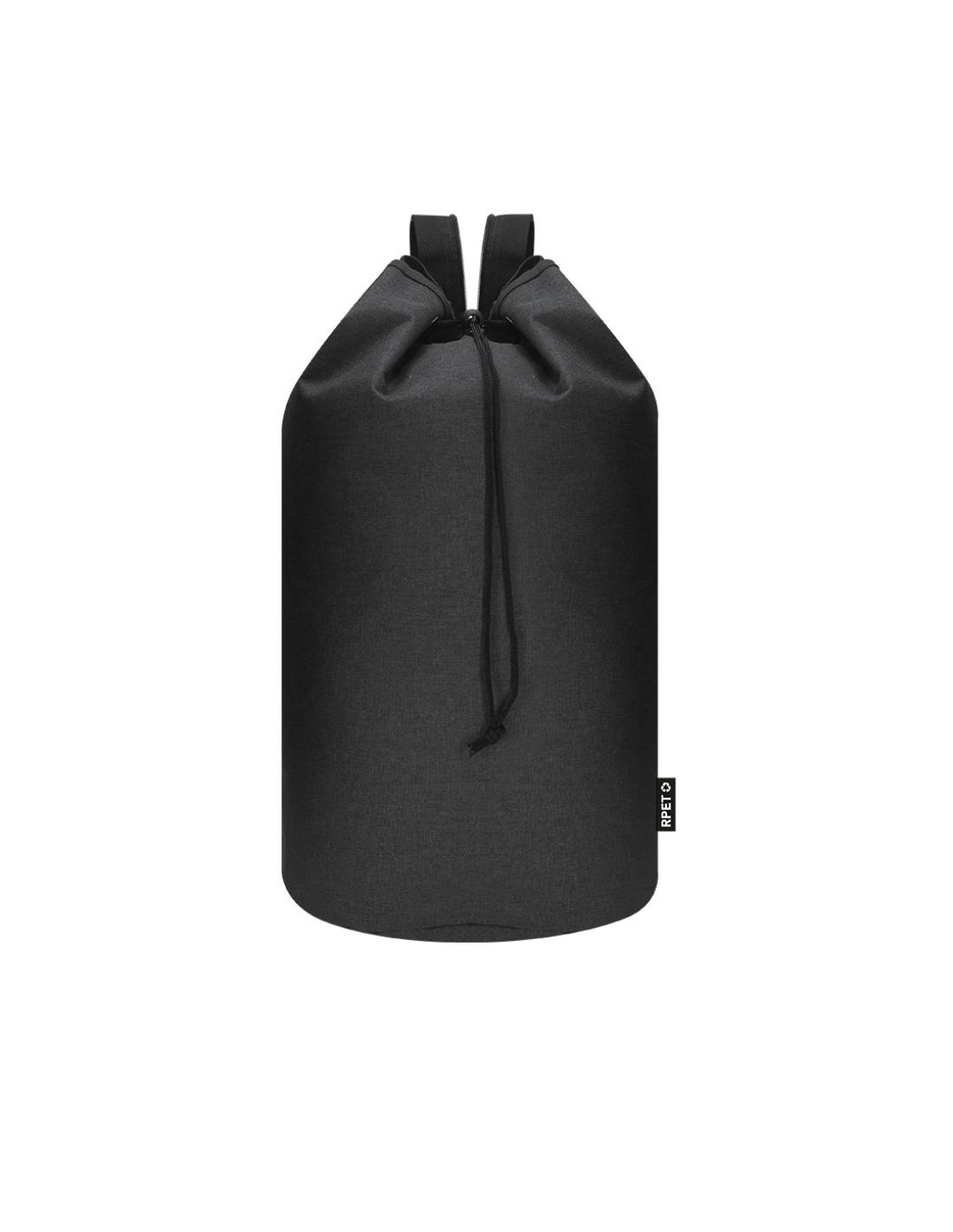 Petate multiusos de gran capacidad en resistente poliéster RPET 600D. Cierre superior de cuerda con accesorio de ajuste y argollas metálicas reforzadas. Cinta de hombros trasera 2 en 1 con cierre de cremallera para transporte en un solo hombro o en los dos. Con distintivo de RPET en etiqueta.El material RPET se elabora a partir de plástico reciclado, para así fomentar la reutilización de residuos plásticos y ayudar a la sostenibilidad del planeta.