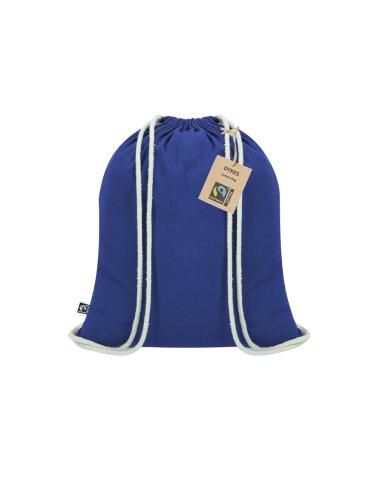 Mochila de cuerdas fabricada en algodón de 140g/m2. Con certificación Fairtrade (Comercio Justo) un sistema comercial solidario y alternativo al convencional que persigue el desarrollo de los pueblos y la lucha contra la pobreza. De acabado cosido, cordones de algodón y resistencia hasta 9kg de peso. Incluida etiqueta Fairtrade y hangtag distintivo en cartón reciclado.