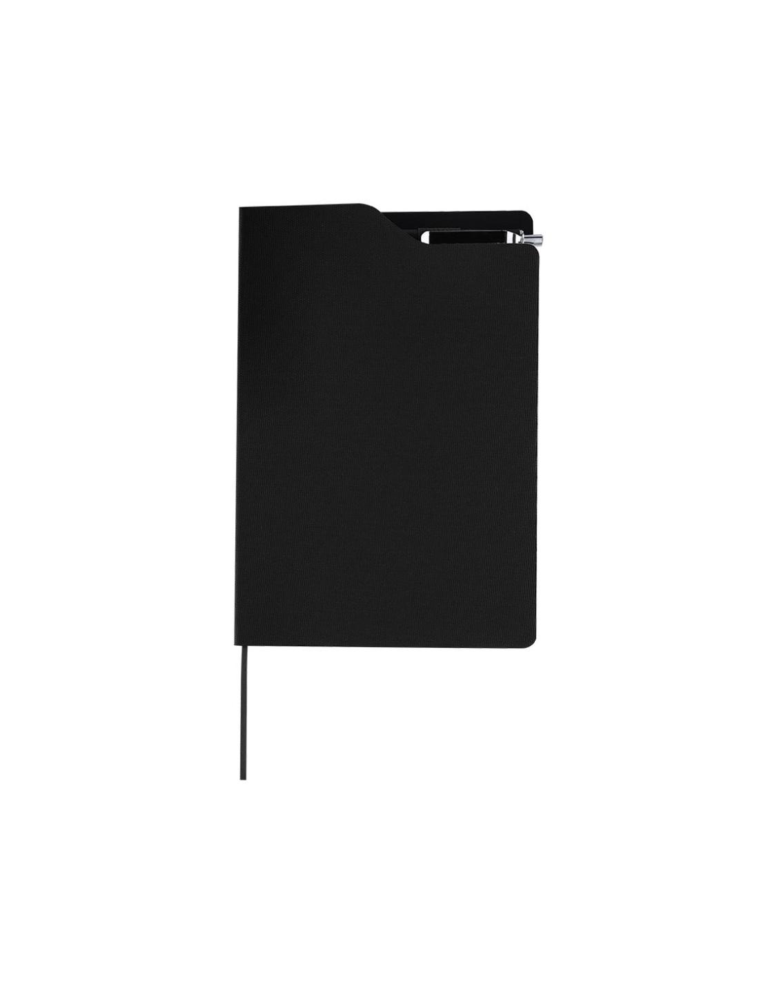 Bloc de notas con bolígrafo en RPET. Incluye 80 páginas de color crema a rayas, marcapáginas y elástico portabolígrafos a juego. Cuenta con bolígrafo con mecanismo pulsador y tinta azul. Incluye distintivo RPET.El material RPET se elabora a partir de plástico reciclado, para así fomentar la reutilización de residuos plásticos y ayudar a la sostenibilidad del planeta.