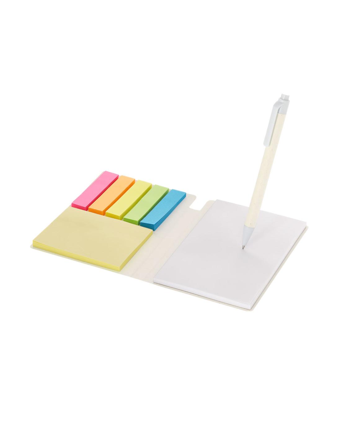 Bloc de notas en cartón de leche reciclado con notas adhesivas. Incluye:- Bolígrafo a juego incluido, de tinta azul.- Soporte para el bolígrafo integrado.- Bloc con 50 hojas color blanco.- Notas adhesivas medianas y mini notas adhesivas en variados colores. Incluye distintivo Recycled Milk Carton. Los Cartones de Ceche se componen en su mayor parte de cartón y aluminio. Durante su proceso de reciclado, se separan los distintos materiales del envase para su reutilización y nuevo uso, contribuyendo así a recorrer el camino infinito de la economía circular. Este material se caracteriza por su alto grado de reciclabilidad, así como por su ligereza y resistencia.