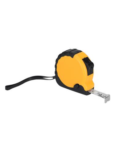 Flexómetro fabricado con RABS de 3 metros con cuchilla metálica y mecanismo de bloqueo. Recubierto con funda protectora de resistente goma, clip metálico para cinturón y cinta de transporte. Con logotipo de RABS en la parte trasera. El RABS es un plástico altamente reciclable de gran resistencia y con multitud de aplicaciones que lo convierten en una solución eco-friendly.
