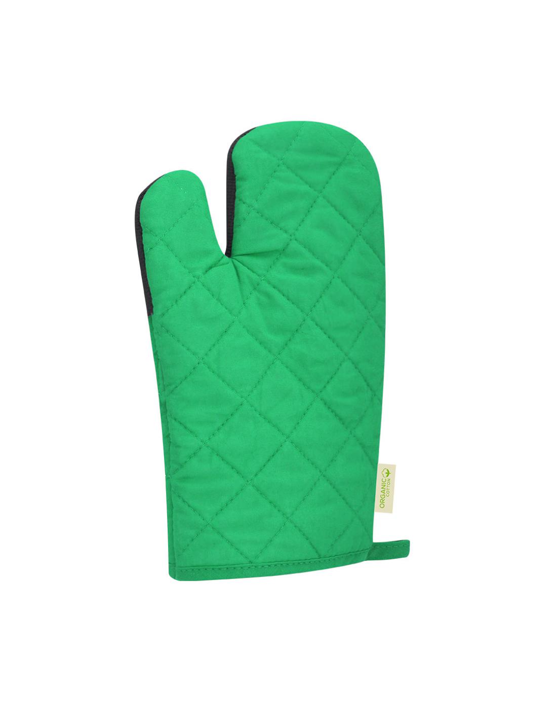 Manopla de algodón orgánico con recubrimiento de goma en la zona de agarre para mayor protección ante altas temperaturas. Incluye distintivo algodón orgánico.
