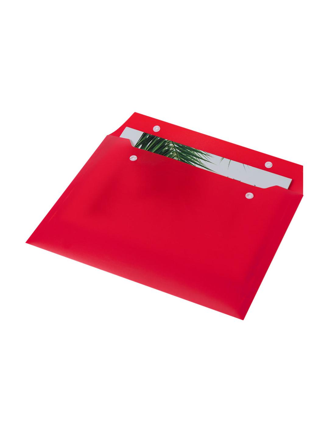 Práctico portadocumentos fabricado en PP Reciclado, con compartimento principal con solapa con cierres de botón en color blanco. El PP Recycled es un plástico reciclado y altamente reciclable, de gran resistencia y apto para multitud de aplicaciones. Con certificación Food Grade, garantizando la seguridad cuando los alimentos entran en contacto con el material usado para fabricar el producto.