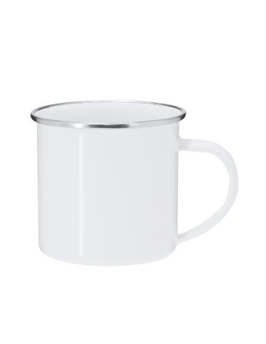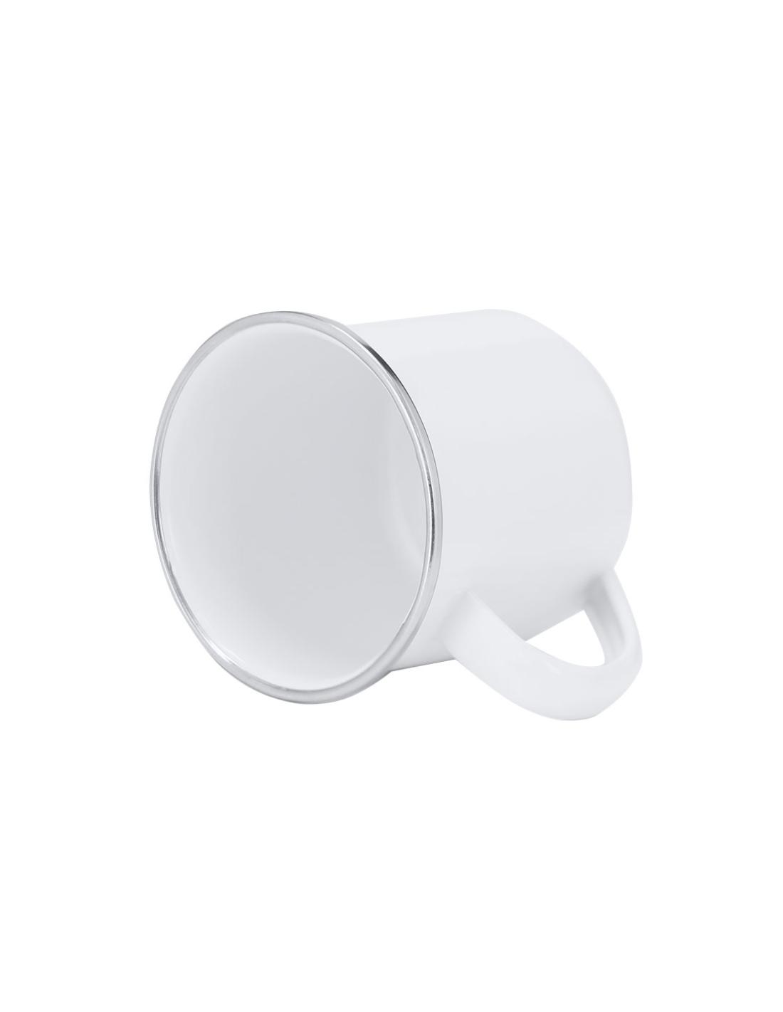Taza metálica de 200ml de capacidad con diseño vintage y acabado blanco brillante con elegante detalle en cromado en el borde. Diseñada especialmente para la sublimación.
