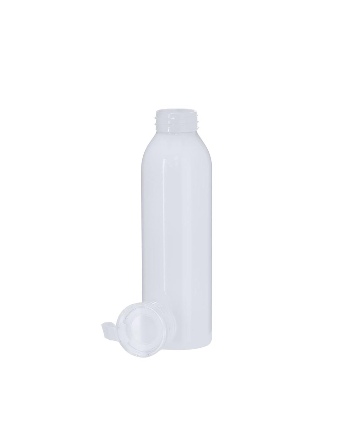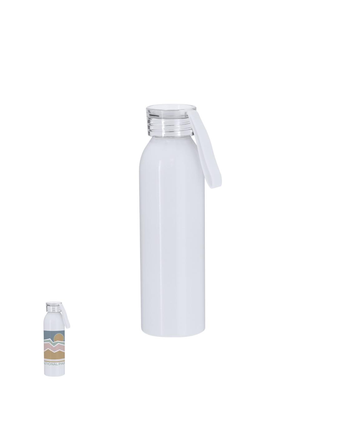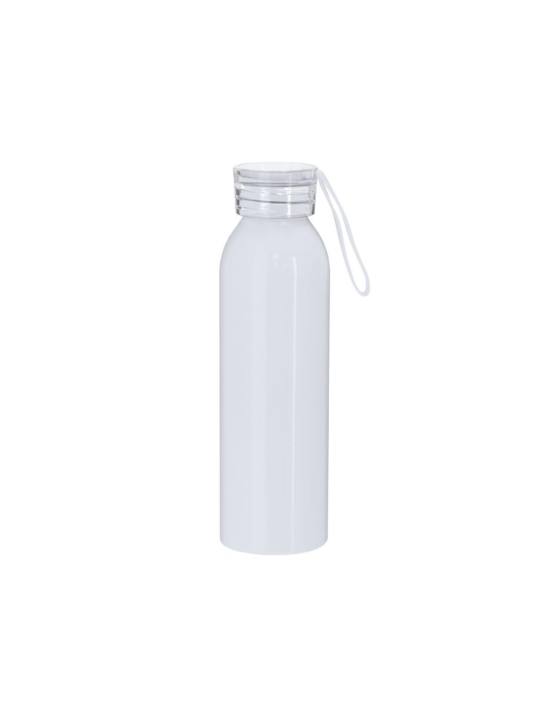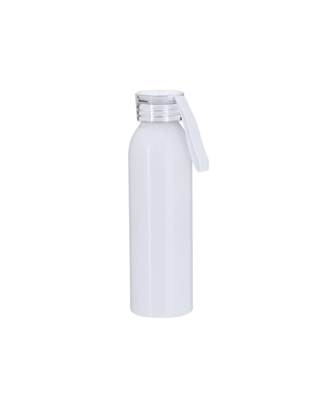 Bidón de 650 ml de capacidad fabricado en resistente aluminio. En color blanco brillante, especialmente diseñado para la sublimación. Con tapón a rosca translúcido y correa a juego para un sencillo transporte. Libre de BPA.