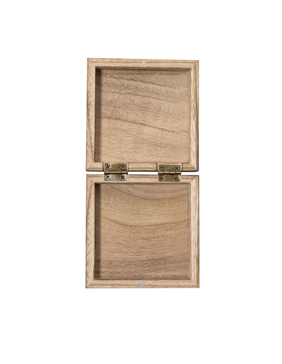 Caja de presentación en madera natural. Con bisagras metálicas y cierre magnético.Elaborado con elementos vegetales para así fomentar la utilización de materias primas naturales y reducir las emisiones contaminantes.
