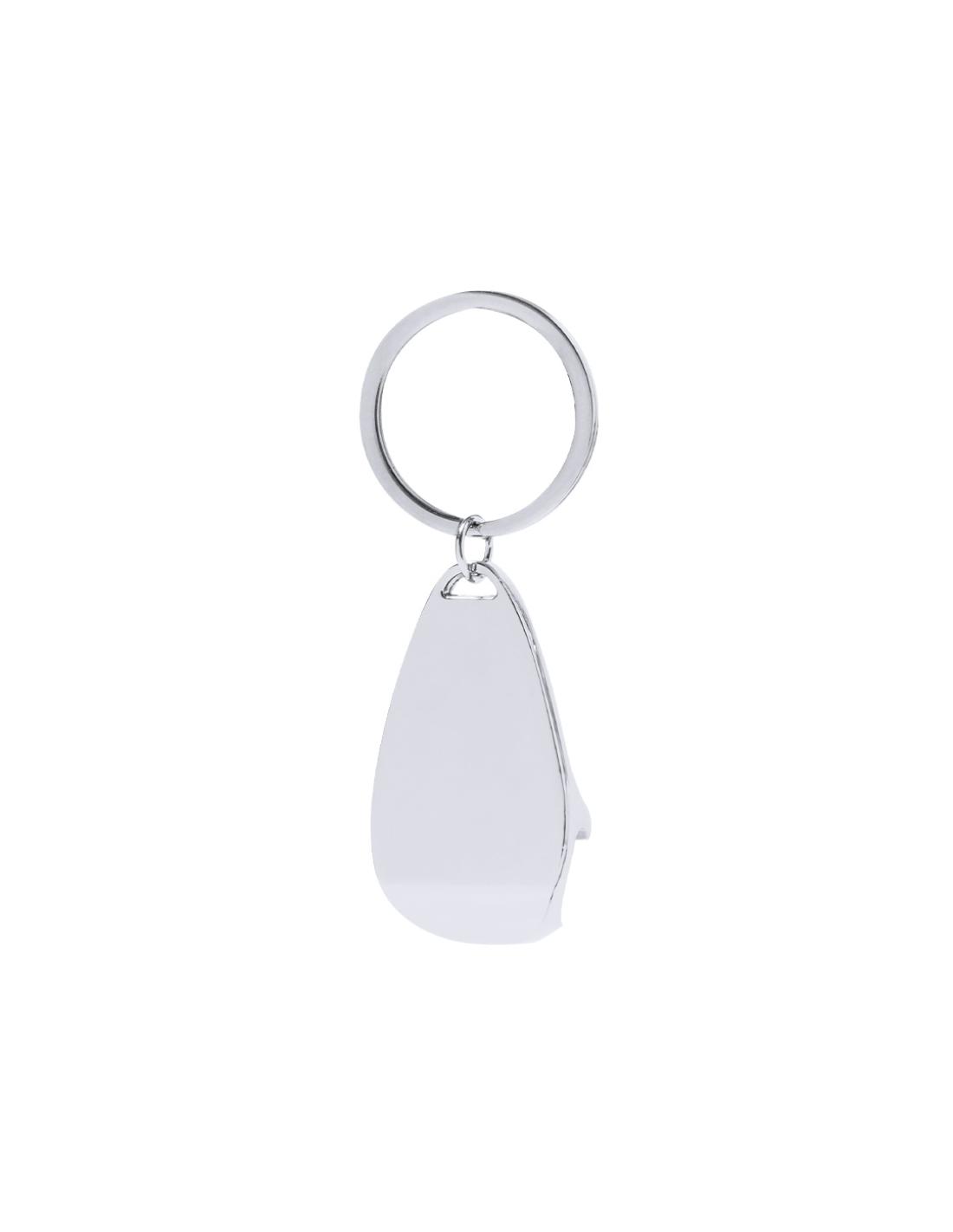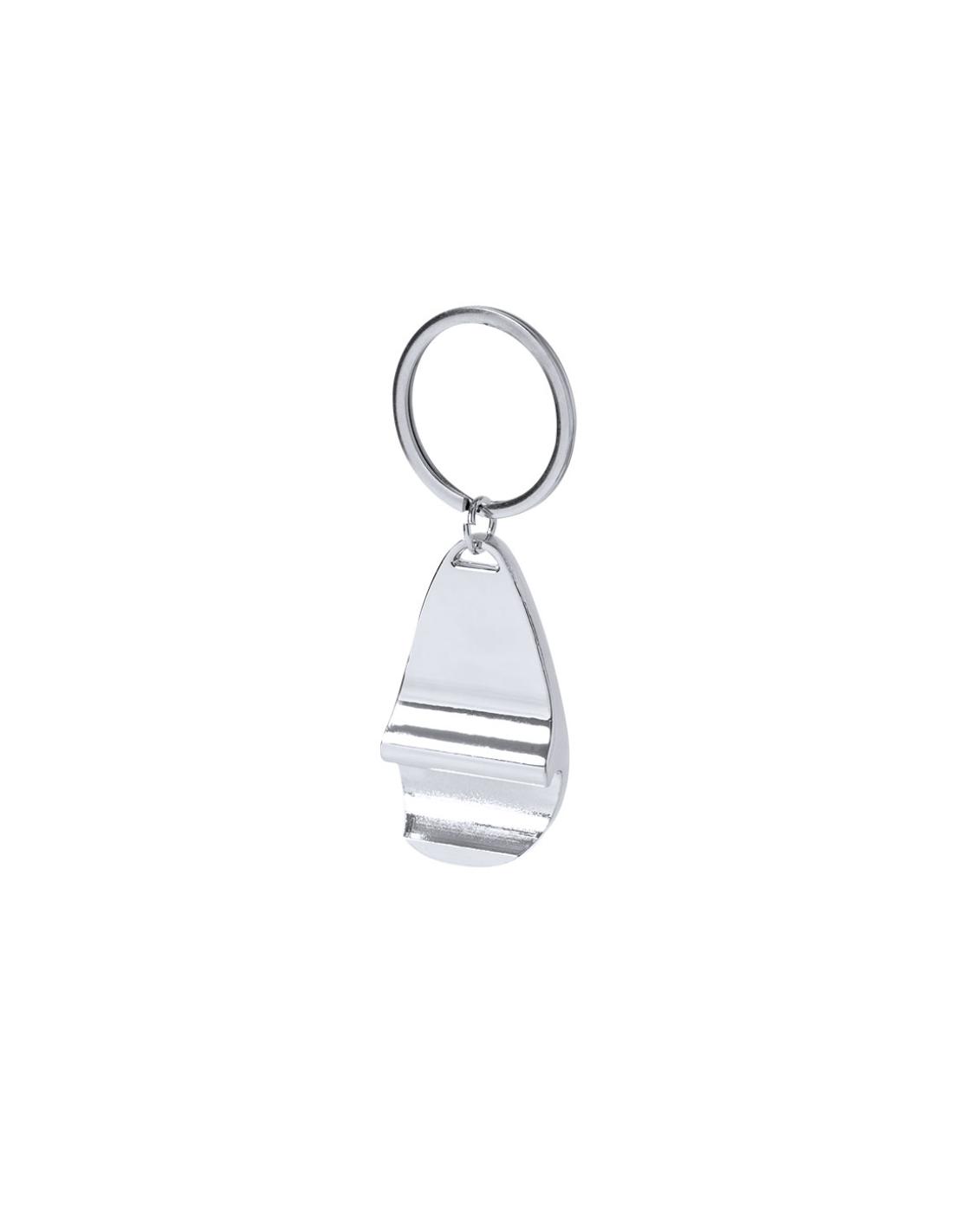 Llavero abridor de metal en acabado.