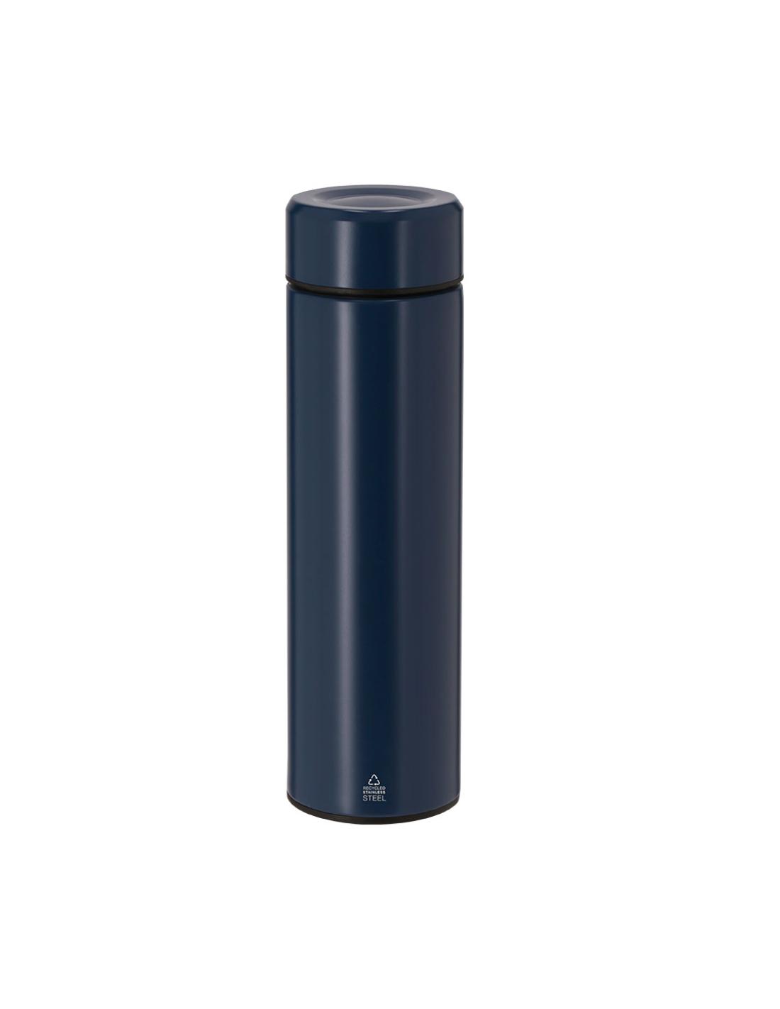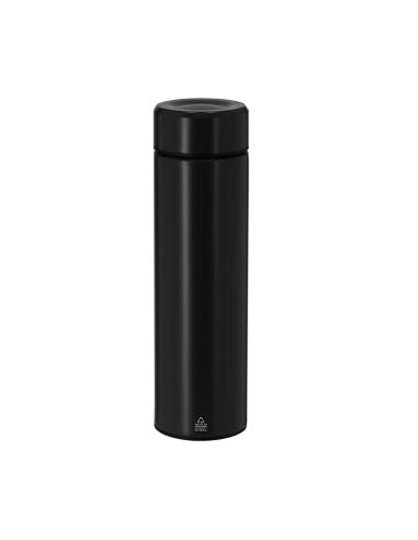 Termo en Acero Inox Reciclado de 450 ml de capacidad. Con doble pared para mejor y más duradera conservación de la temperatura e interior con recubrimiento de cerámica, apto para bebidas carbonatadas. Infusor incluido y sistema de apertura fácil a rosca. Con distintivo de Acero Inox Reciclado.El acero es uno de los materiales más demandados y que puede encontrarse casi en todas partes, desde productos de uso diario a grandes construcciones. Con innumerables propiedades, entre las que cabe destacar la durabilidad y su alto grado de reutilización, convirtiéndolo en una alternativa muy valorada en soluciones de sostenibilidad. Debidamente tratado, permite obtener nuevos recursos de infinita utilización.