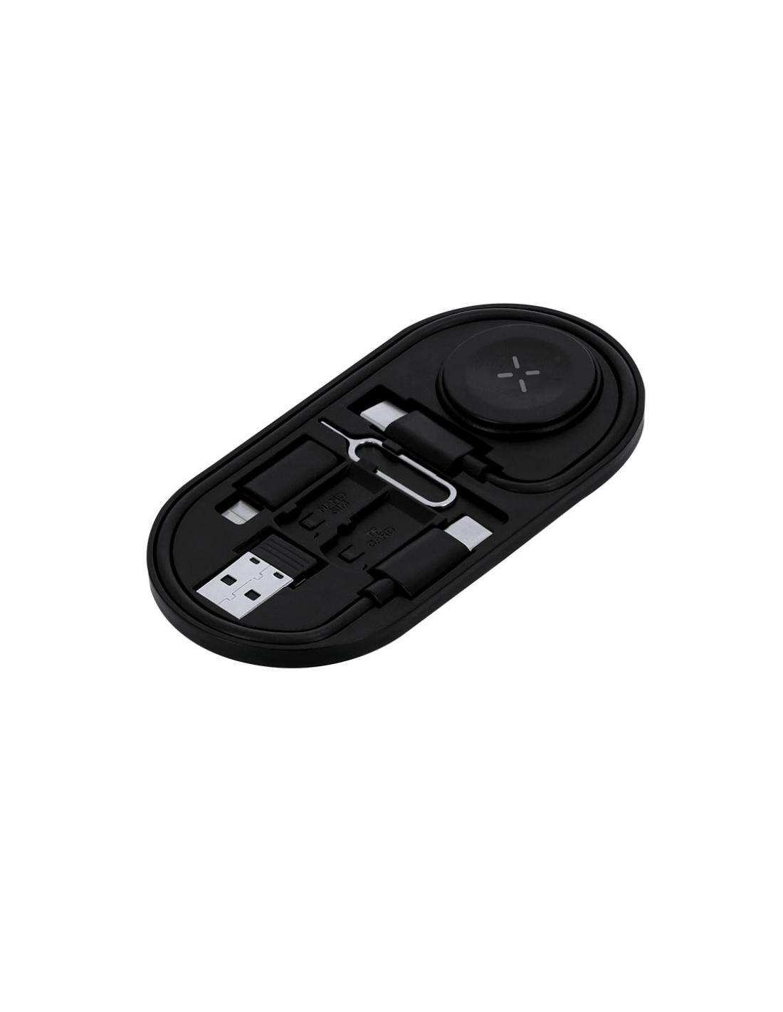 Set de cables cargadores en ABS Reciclado (RABS). Incluye:- Carga inalámbrica para smartwatch,.- Cable multifunción con cabezales USB, Tipo-C y Lightning, compatible con una amplia variedad de dispositivos y con capacidad de transferencia de datos.- Pin eyector de SIM, con ranuras para almacenamiento de Nano SIM y tarjetas TF.El RABS es un plástico altamente reciclable de gran resistencia y con multitud de aplicaciones que lo convierten en una solución eco-friendly. Con certificación RCS, que garantiza el origen reciclado del mismo y con logo RABS grabado.