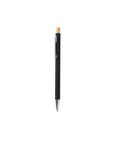 Bolígrafo de mecanismo pulsador fabricado en aluminio reciclado. Pulsador en bambú y cuerpo acabado goma mate. Clip metálico y distintivo aluminio reciclado en la parte superior del bolígrafo, en tinta azul.El aluminio reciclado es un material con posibilidades de reciclaje casi infinitas, sin perder sus propiedades originales y consumiendo menos energía en este proceso.Certificación GRS (Global Recycled Standard / Estándar de Reciclaje Global), que garantiza el origen reciclado del material usado para fabricar el producto.Materiales como el Bambú fomentan la utilización de materias primas naturales reduciendo las emisiones contaminantes. Además, el bambú proviene de una planta de gran resistencia y versatilidad, con crecimiento y regeneración rápida, siendo una excelente alternativa al uso de madera...