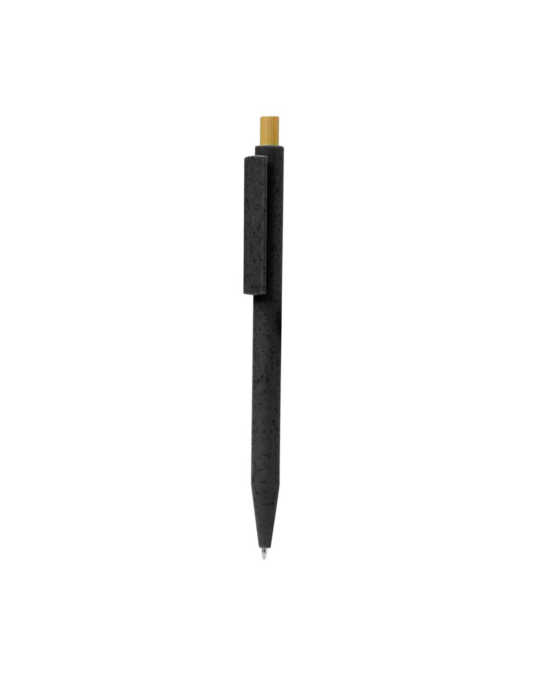 Bolígrafo fabricado con fibra de caña de trigo. Con cuerpo y clip a juego, de mecanismo pulsador fabricado en bambú y en tinta azul. Con distinguido logo de Caña de Trigo marcado en la caña. La Caña de Trigo fomenta la utilización de materias primas naturales, reduciendo así las emisiones contaminantes.