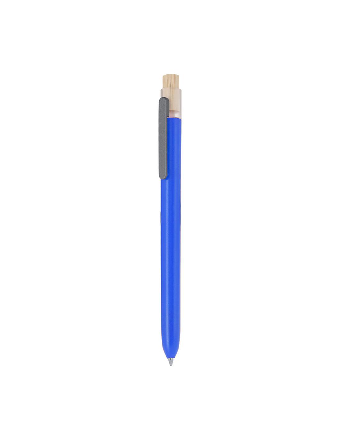 Bolígrafo fabricado en RABS. Cuenta con un clip metálico y un mecanismo pulsador fabricado en bambú. En tinta azul. Distintivo RABS en la parte superior del bolígrafo.El RABS es un plástico altamente reciclable de gran resistencia y con multitud de aplicaciones que lo convierten en una solución eco-friendly.