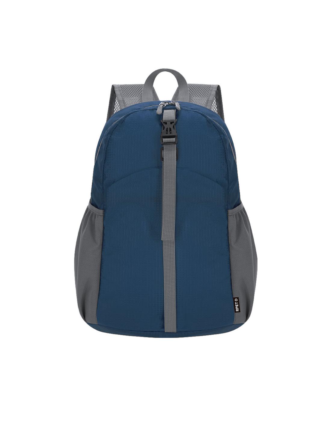 Mochila plegable en suave poliéster Ripstop RPET 210D. Bolsillo principal con cierre de doble tirador, bolsillo interior de doble función y bolsillo frontal con cierre de clip. Esquinas reforzadas con rejillas, cintas de hombros regulables y accesorios en color gris. Plegado de pequeño tamaño, con asa de transporte. Distintivo RPET en etiqueta.El material RPET se elabora a partir de plástico reciclado, para así fomentar la reutilización de residuos plásticos y ayudar a la sostenibilidad del planeta.