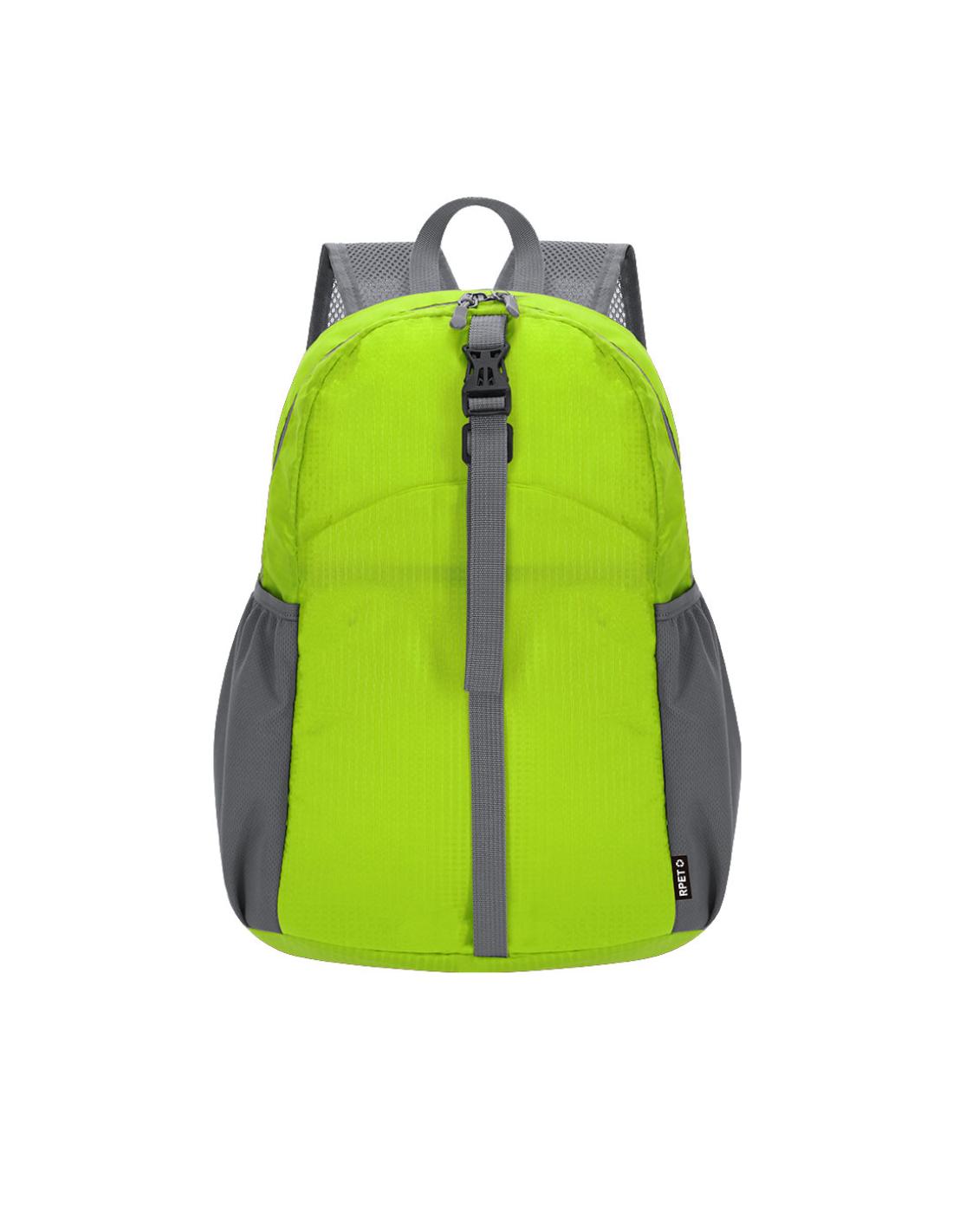 Mochila plegable en suave poliéster Ripstop RPET 210D. Bolsillo principal con cierre de doble tirador, bolsillo interior de doble función y bolsillo frontal con cierre de clip. Esquinas reforzadas con rejillas, cintas de hombros regulables y accesorios en color gris. Plegado de pequeño tamaño, con asa de transporte. Distintivo RPET en etiqueta.El material RPET se elabora a partir de plástico reciclado, para así fomentar la reutilización de residuos plásticos y ayudar a la sostenibilidad del planeta.