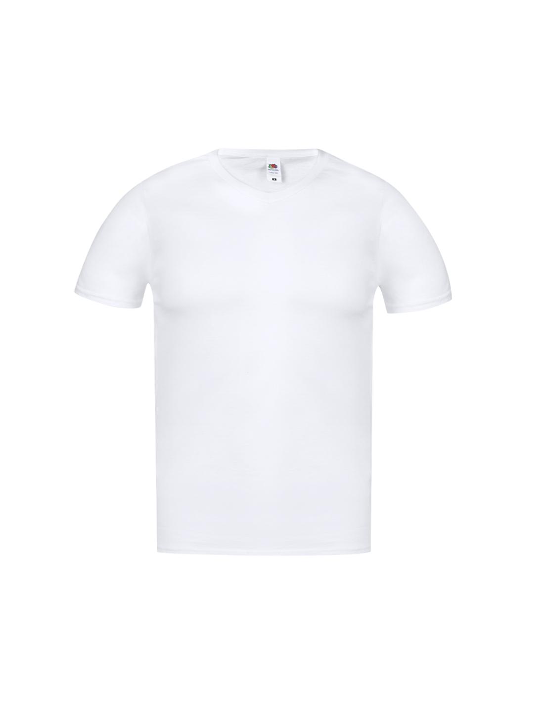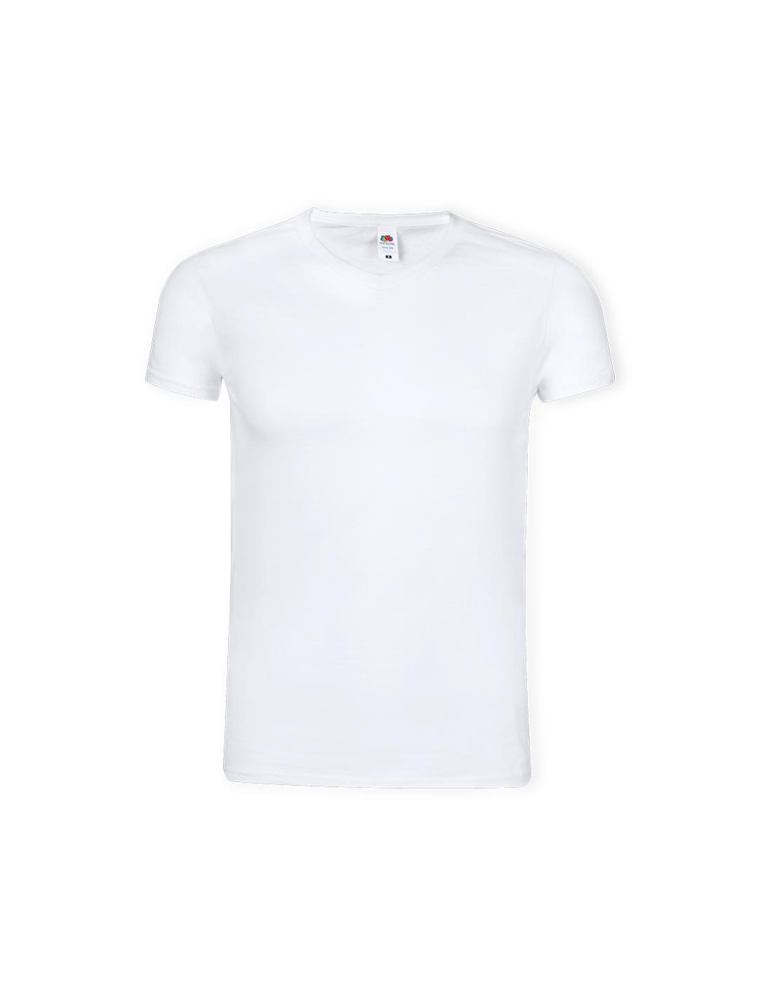 Camiseta para adulto blanca Iconic V-Neck de Fruit Of The Loom. Fabricada en material 100% algodón peinado Ring Spun de 140g/m2. De tacto suave y corte moderno, con cuello en pico estrecho de canalé 1x1 y tapeta a juego. Etiqueta fácilmente removible y disponible en tallas S, M, L, XL, XXL.