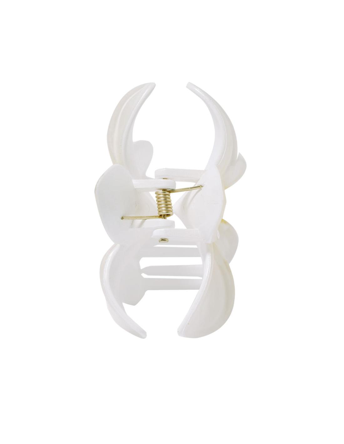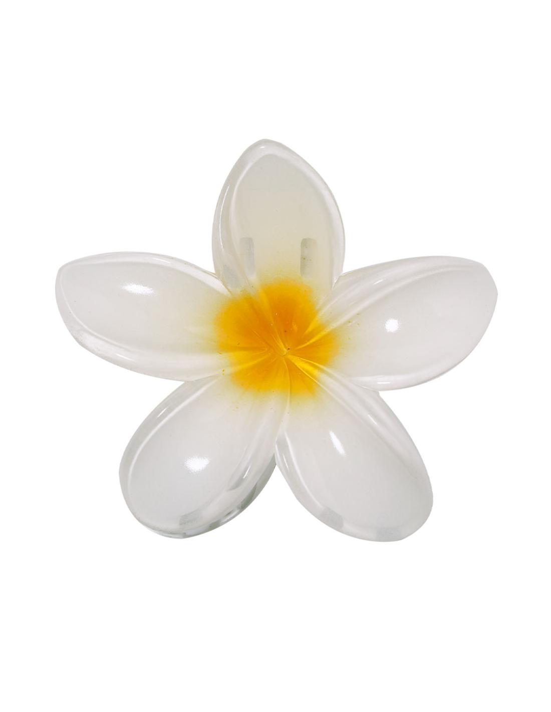 Pinza para el pelo con diseño original en forma de flor blanca y centro amarillo. Cuenta con 8 resistentes dientes que garantizan una sujeción cómoda y segura.