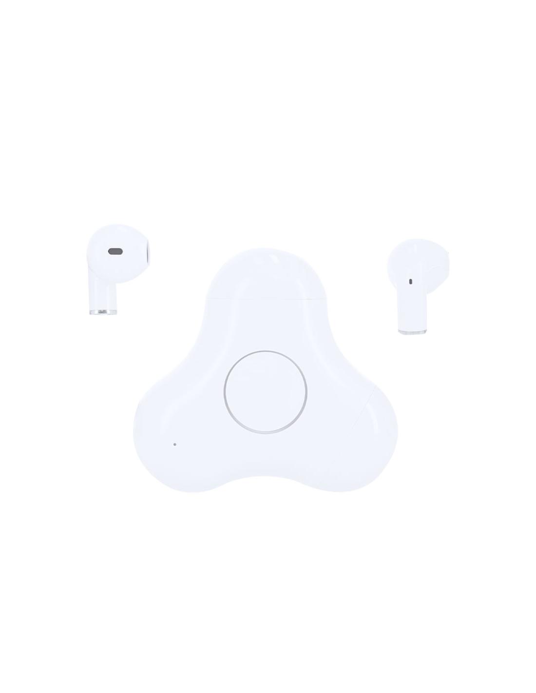 Auriculares intraurales en elegante acabado blanco y conexión Bluetooth 5.3. Estuche con original diseño en forma de spinner, con batería de 200 mAh. Auriculares botón de control táctil integrado y con función manos libres. Recargables, con cable Tipo C -incluido-. Disponible manual de instrucciones en español e inglés.