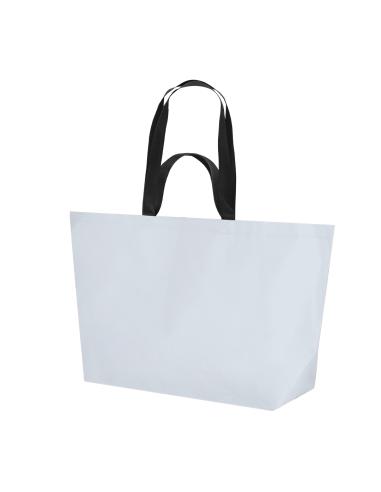 Bolsa fabricada en pp-woven laminado de gran capacidad. Con doble asas, cortas de 44x3cm y largas de 77x3cm reforzadas con costura en X y resistencia de hasta 10kg