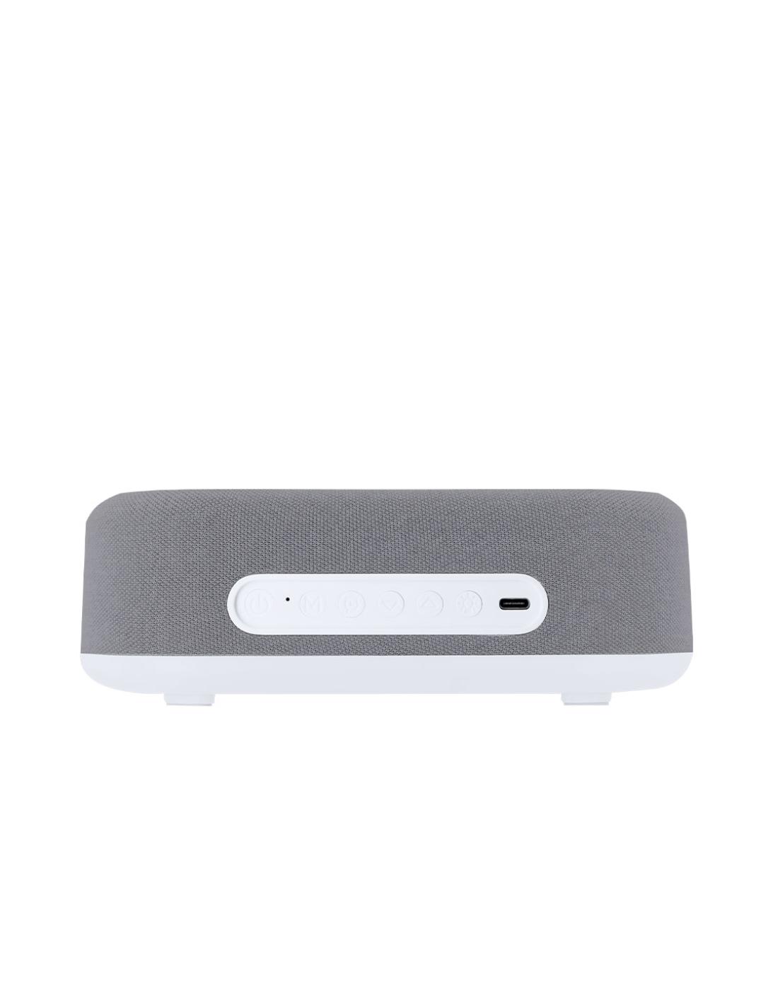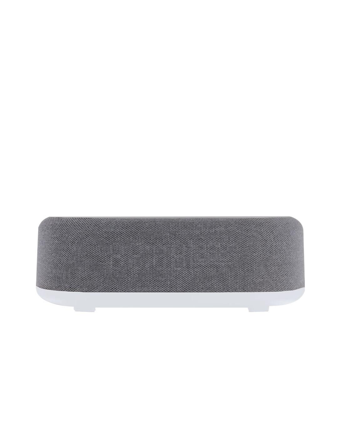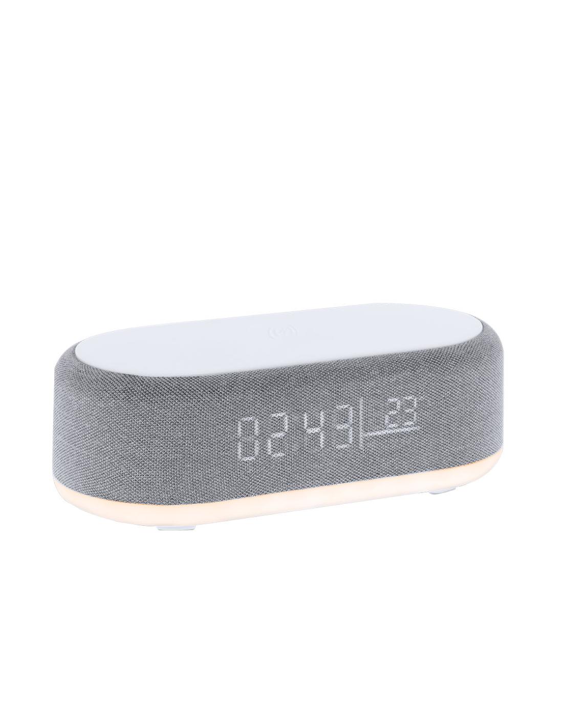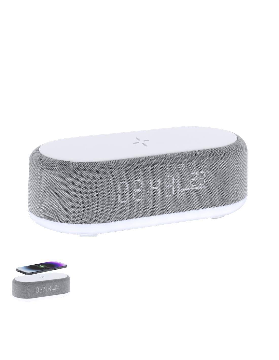 Reloj multifunción 5 en 1. Incluye múltiples funciones:-Cargador inalámbrico de 15W- Lámpara con luz cálida e intensidad regulable, ideal para crear ambientes agradables- Altavoz de 5W- Función hora (12/24h) y alarma- Indicador de temperatura y fechaCon pantalla retroiluminada y batería de 1200 mAh. Compatible con dispositivos equipados con tecnología de carga inalámbrica Qi. Fabricado en ABS blanco en combinación de poliéster. Con entrada USB Tipo C -cable incluido -.