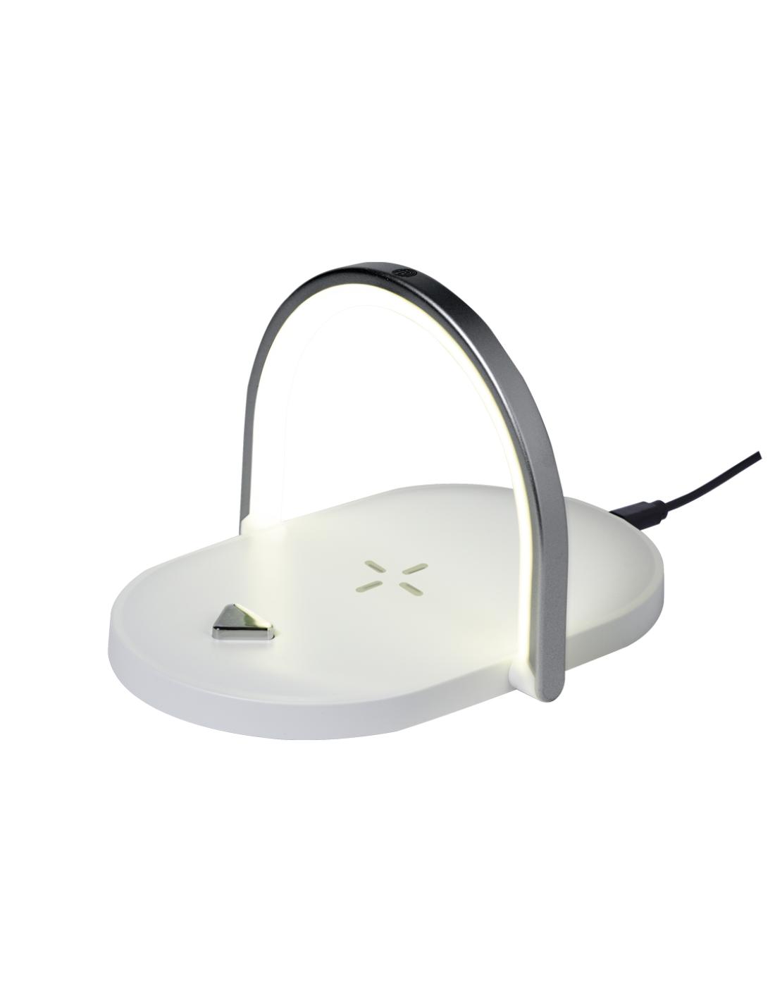 Lámpara multifunción fabricada en resistente ABS. Con cargador inalámbrico de 15W integrado y 32 LEDs en un aro plegable que también hace de soporte. Compatible con dispositivos móviles de carga inalámbrica y con cable cargador Tipo C -incluido-. Disponible manual de instrucciones en español e inglés.Fabricada conforme a los estándares RoHS y en cumplimiento con los siguientes requisitos de seguridad:Sistema de protección contra sobrecalentamiento.Sistema de protección contra sobrecarga.Sistema de bloqueo para evitar cortocircuitos.