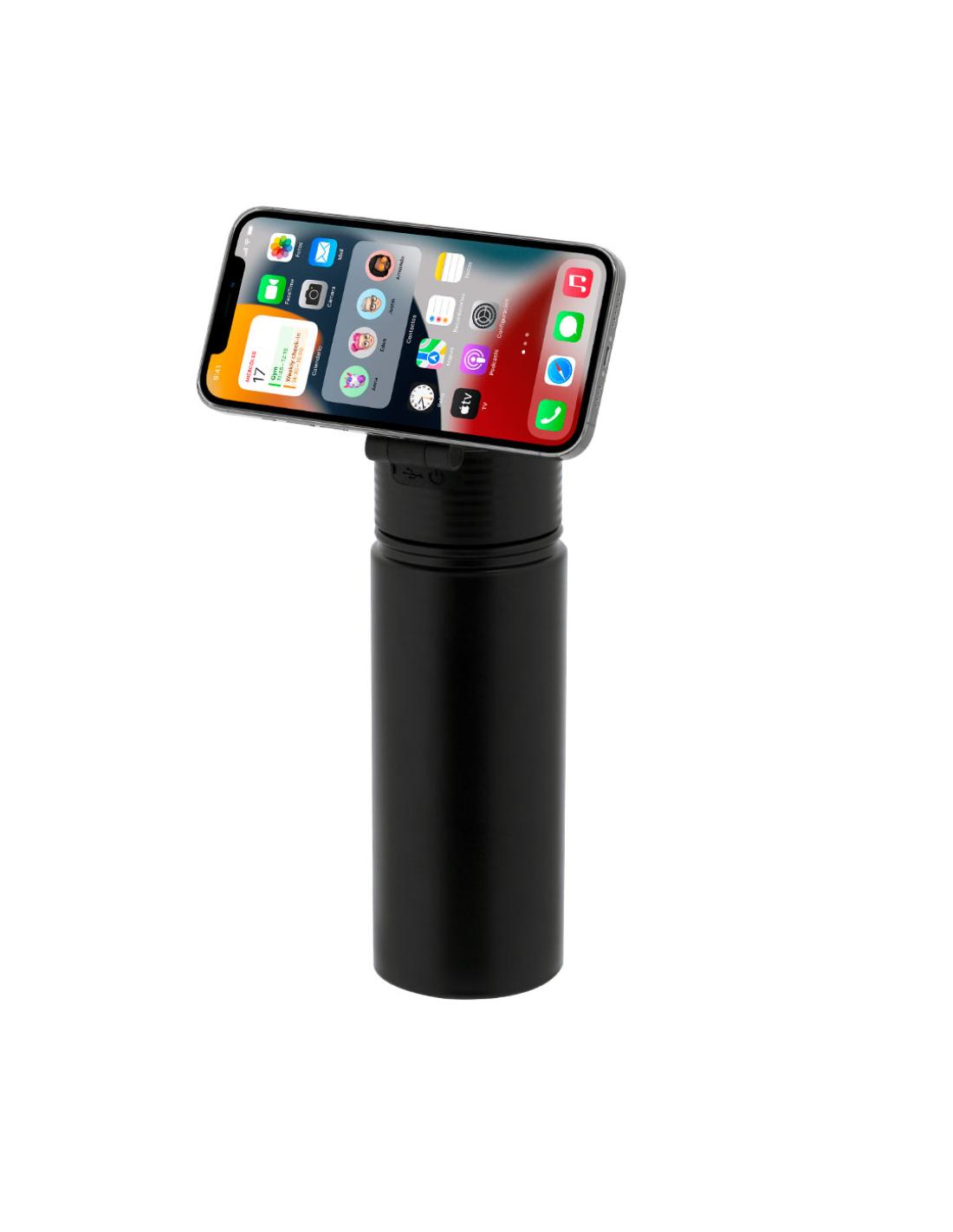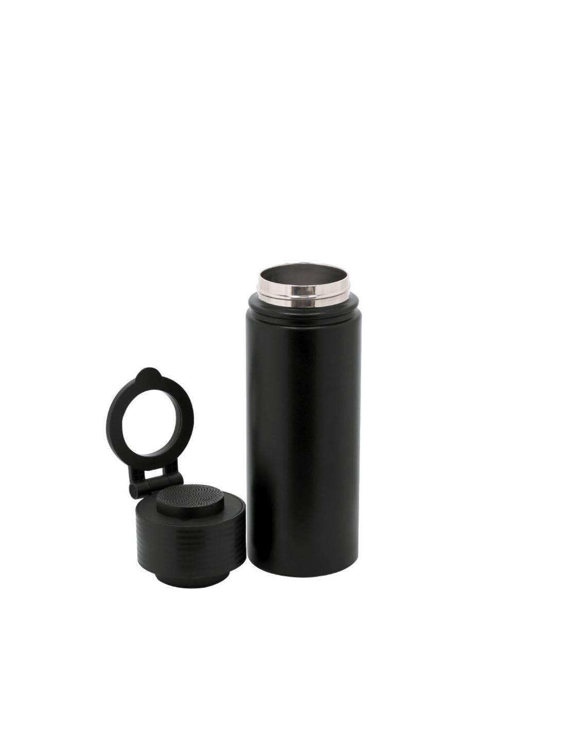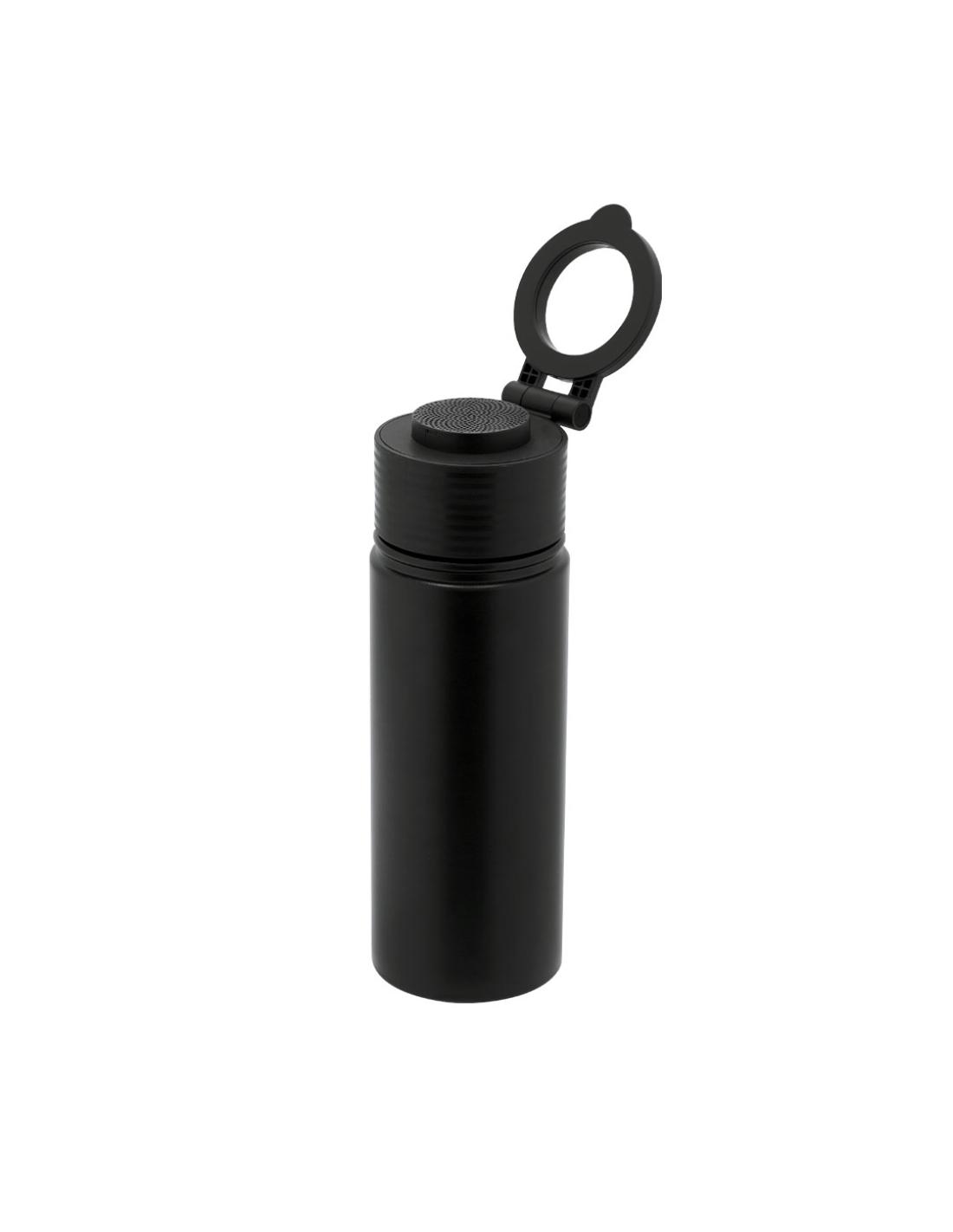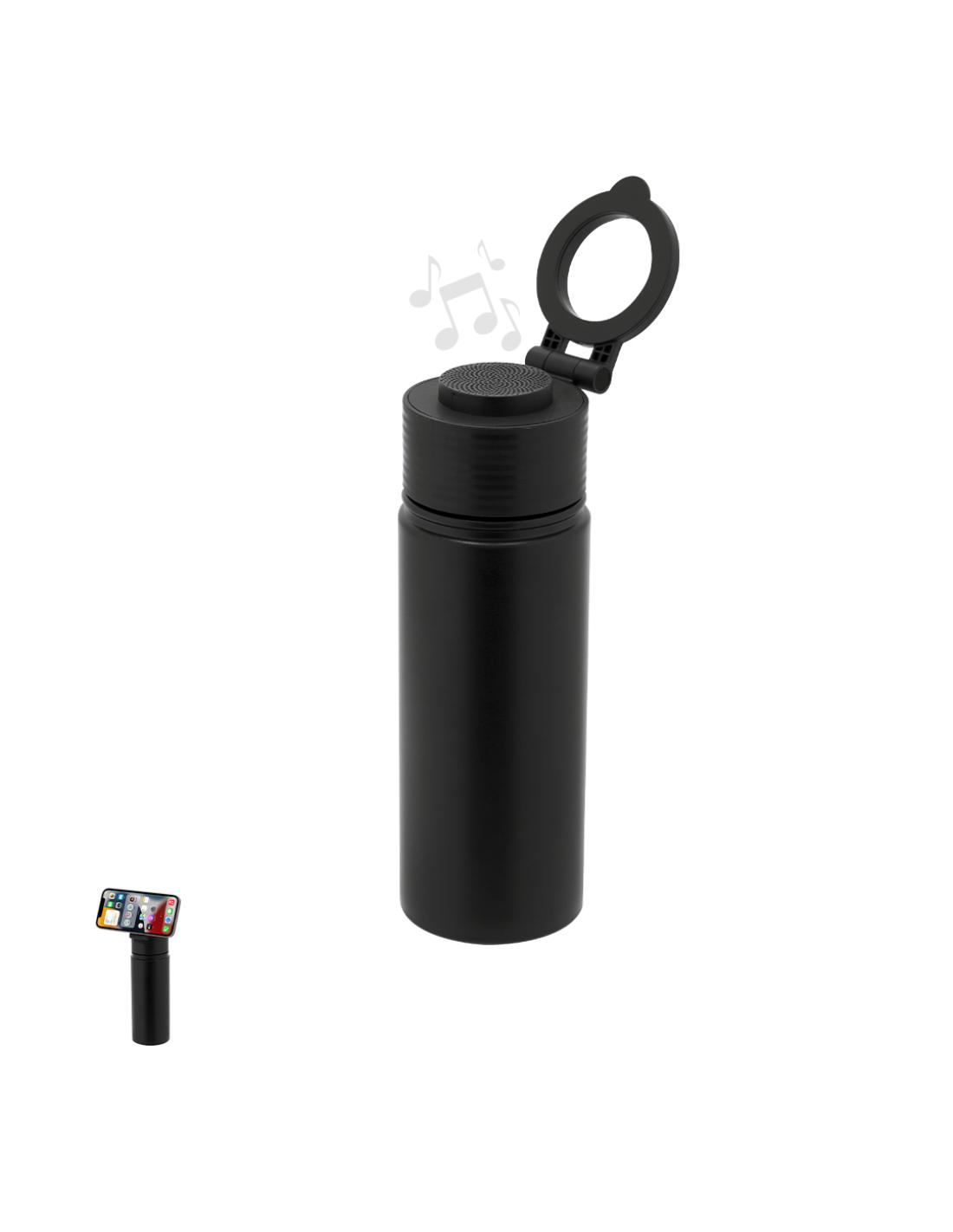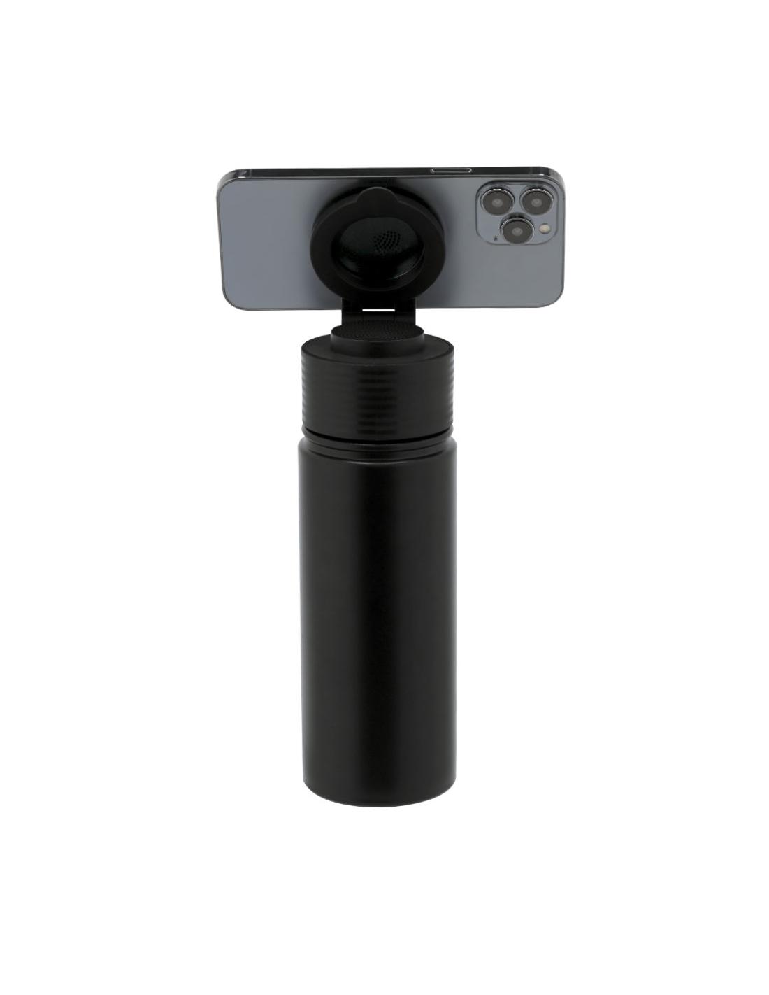 Bidón térmico con Altavoz Bluetooth 5.4 de 3W integrado. Con 500 ml de capacidad y fabricado en acero inox de doble pared, asegurando una durabilidad máxima y un excelente mantenimiento de la temperatura de las bebidas, ya sean frías o calientes. Tapadera con sistema de cierre de rosca y libre de BPA, e incluye sujeción orientable para smartphone con tecnología Magsafe. El altavoz Bluetooth de 600 mAh integrado en el tapón es fácilmente extraíble gracias a su sistema de rosca.