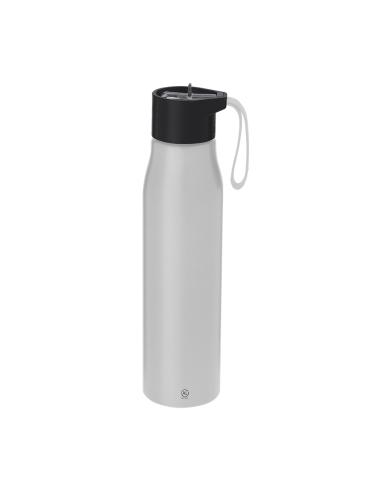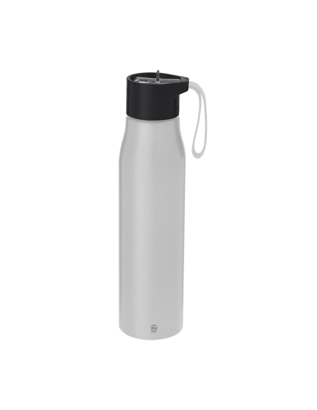 Bidón en Aluminio Reciclado de 700 ml de capacidad en acabado mate. Sistema de fácil apertura libre de BPA con dosificador de pajita y correa de silicona a juego para un fácil transporte. Con logotipo Aluminio Reciclado. El Aluminio Reciclado es un material con posibilidades de reciclaje casi infinitas, sin perder sus propiedades originales y consumiendo menos energía en este proceso.Certificación GRS (Global Recycled Standard / Estándar de Reciclaje Global), que garantiza el origen reciclado del material usado para fabricar el producto.