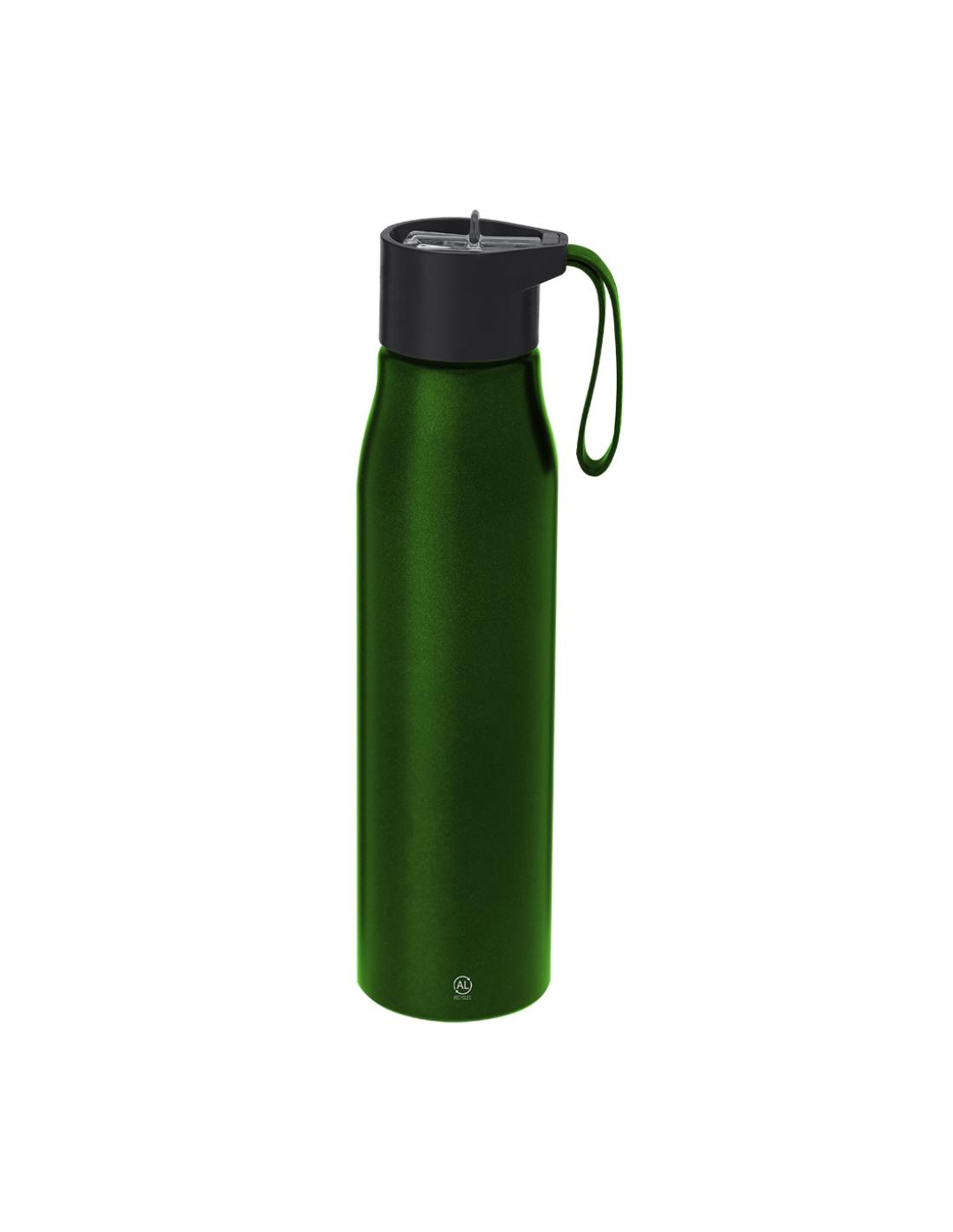 Bidón en Aluminio Reciclado de 700 ml de capacidad en acabado mate. Sistema de fácil apertura libre de BPA con dosificador de pajita y correa de silicona a juego para un fácil transporte. Con logotipo Aluminio Reciclado. El Aluminio Reciclado es un material con posibilidades de reciclaje casi infinitas, sin perder sus propiedades originales y consumiendo menos energía en este proceso.Certificación GRS (Global Recycled Standard / Estándar de Reciclaje Global), que garantiza el origen reciclado del material usado para fabricar el producto.
