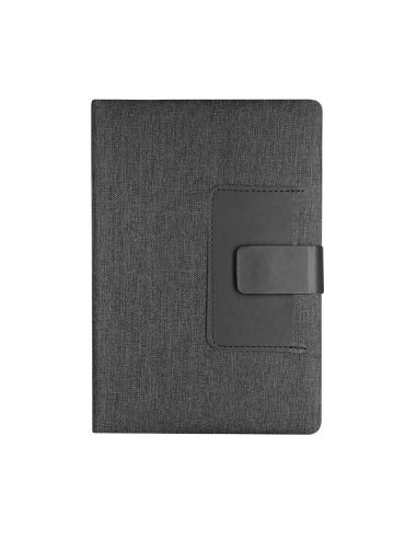 Bloc de notas de tapas rígidas en combinación del poliéster RPET 300D y PU. Incluye bolsillo de PU en portada, ideal para tarjetas. Con cierre magnético, 80 páginas de disposición a una raya y marcapáginas a juego.El material RPET se elabora a partir de plástico reciclado, para así fomentar la reutilización de residuos plásticos y ayudar a la sostenibilidad del planeta.