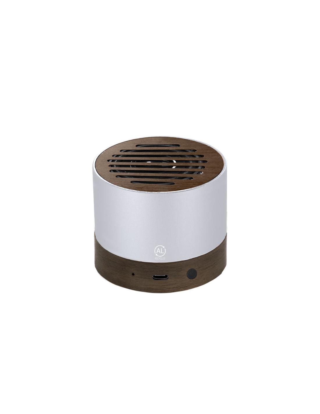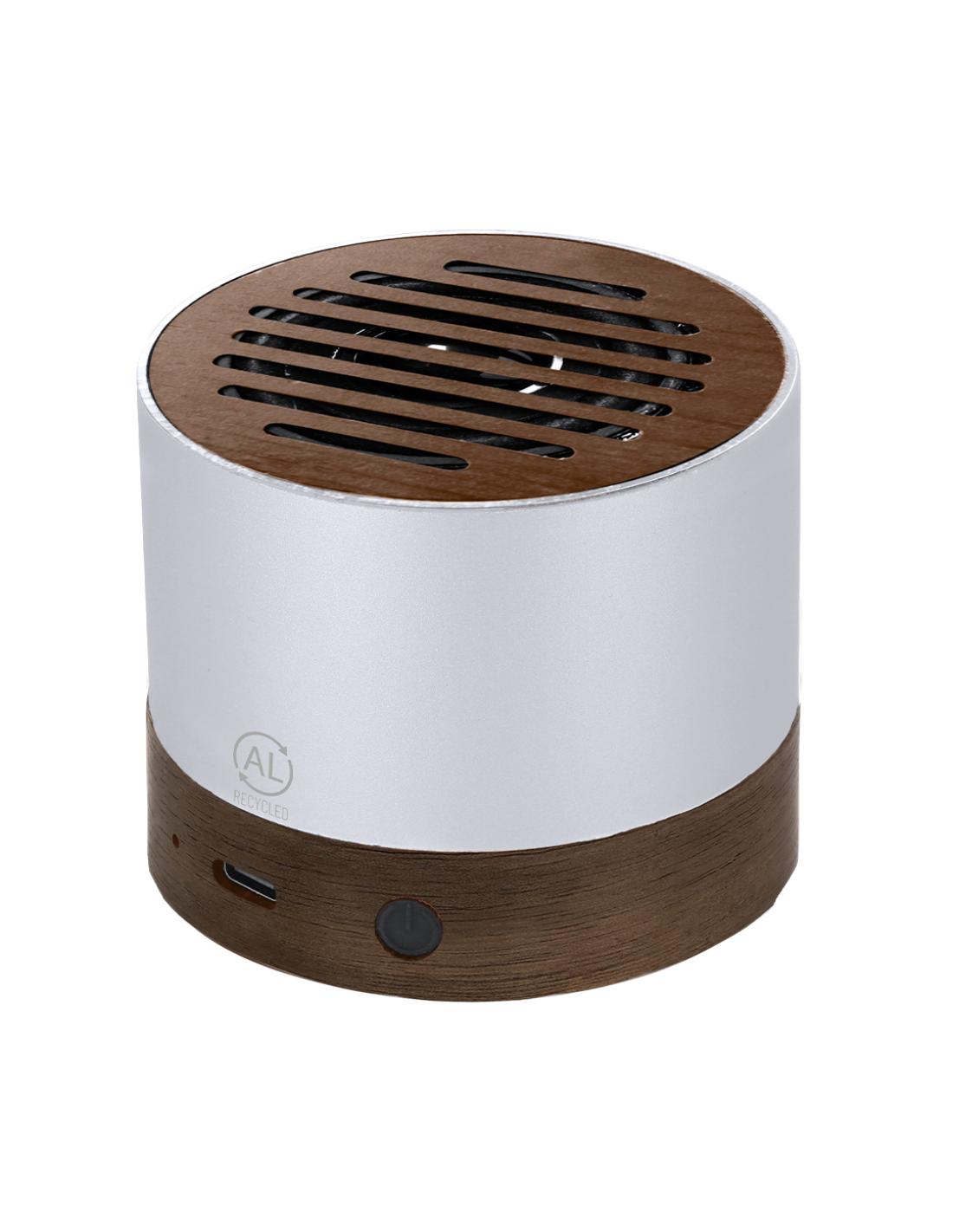 Altavoz fabricado en aluminio reciclado con madera de nogal. Con conexión Bluetooth 5.3 y 3W de potencia. Incluye distintivo Aluminio Reciclado en carcasa. El Aluminio Reciclado es un material con posibilidades de reciclaje casi infinitas, sin perder sus propiedades originales y consumiendo menos energía en este proceso.Elaborado con elementos vegetales para así fomentar la utilización de materias primas naturales y reducir las emisiones contaminantes.Certificación GRS (Global Recycled Standard / Estándar de Reciclaje Global), que garantiza el origen reciclado del material usado para fabricar el producto.