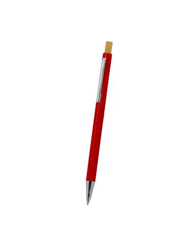 Elegante bolígrafo con pulsador fabricado en bambú. Cuerpo en resistente ABS, clip metálico, con mecanismo pulsador y en tinta azul.Materiales como el bambú fomentan la utilización de materias primas naturales, reduciendo las emisiones contaminantes. Proviene de una planta de gran resistencia y versatilidad, con crecimiento y regeneración rápidos, siendo una excelente alternativa al uso de madera tradicional.